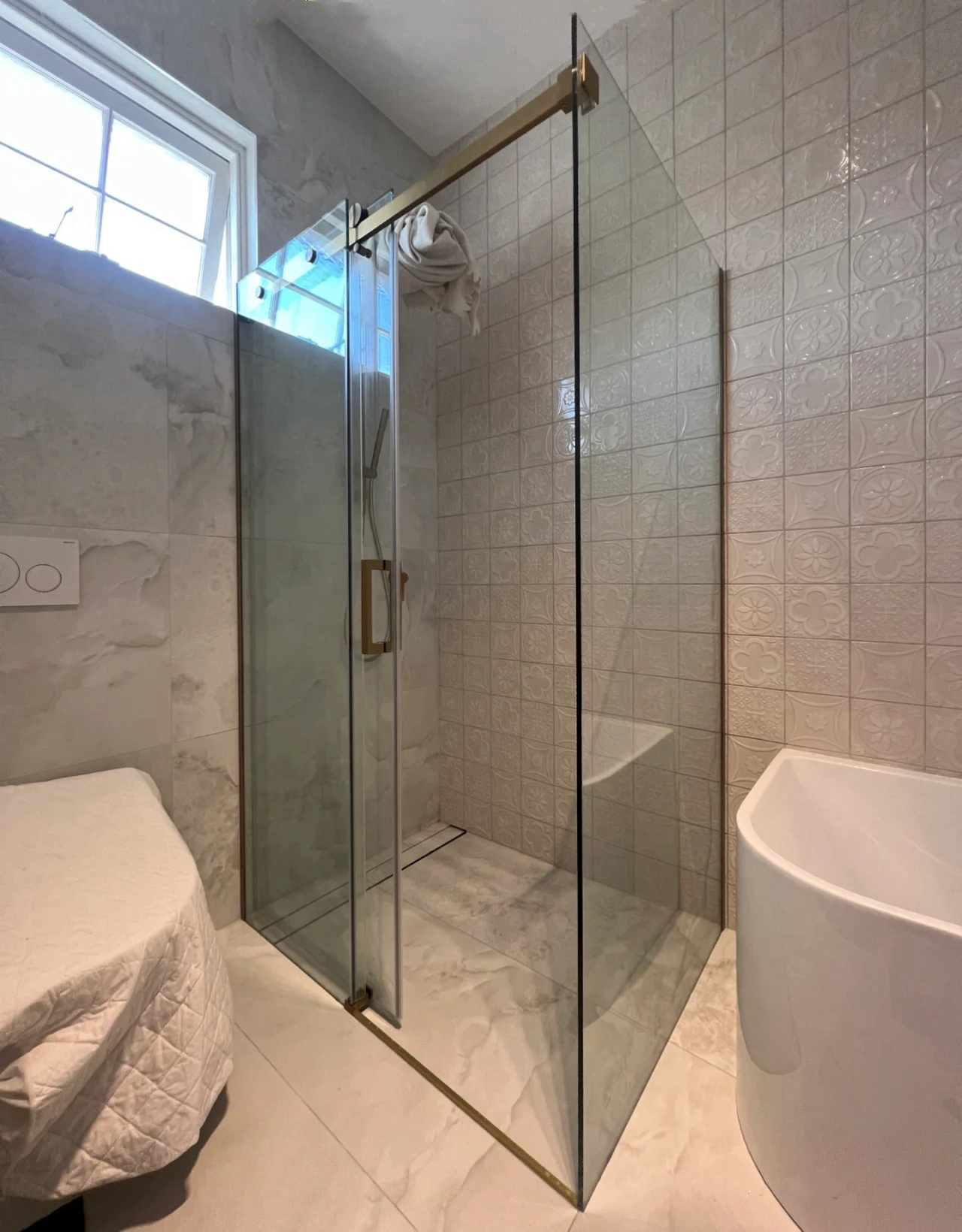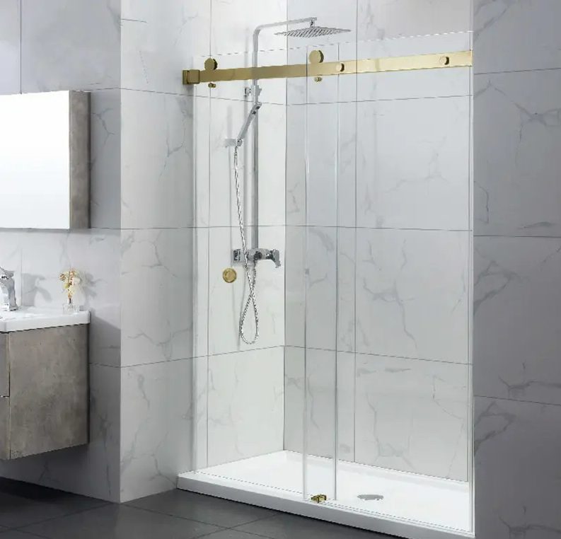 Frameless Glass 1500wx900dmm Sliding Door Brushed Gold