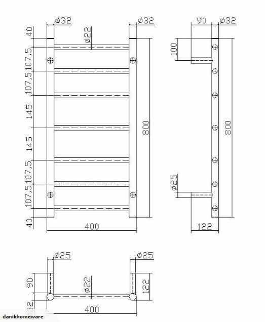 9 Bar Round Profile Heated Towel Rail – Chrome