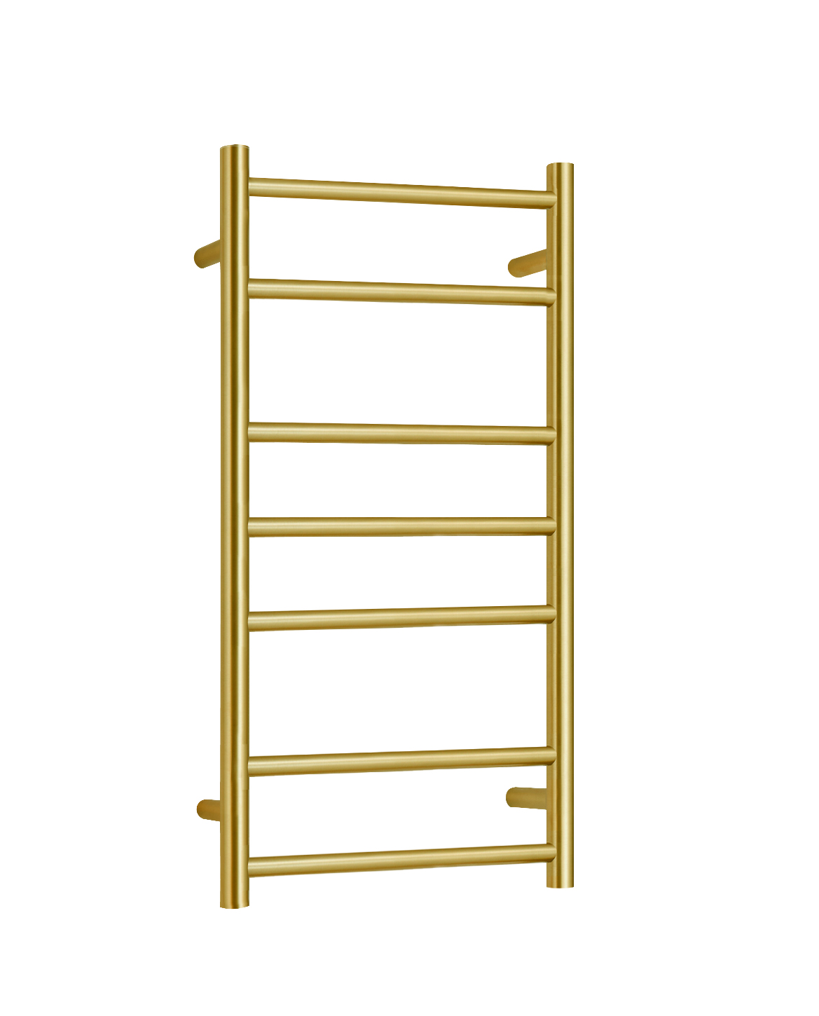 7 Bar Round Profile Heated Towel Rail – Brushed Gold