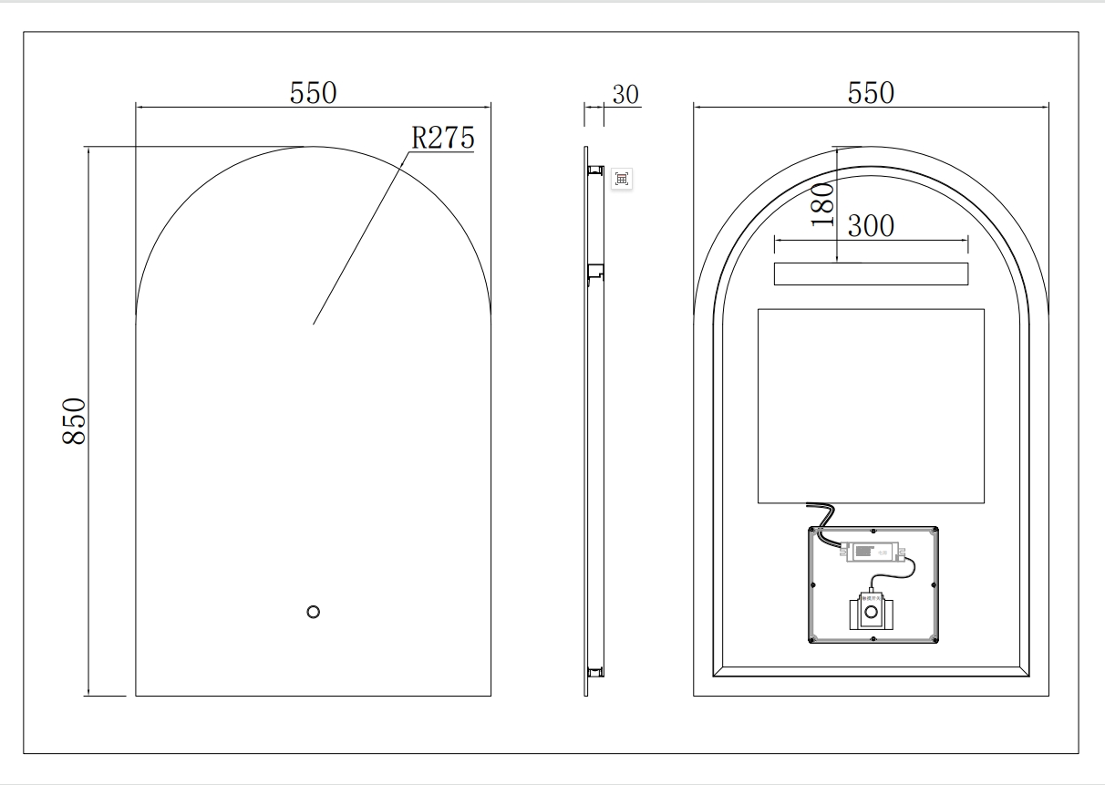 AVA Frameless Arch Back-Lit LED Mirror – 550x850mm