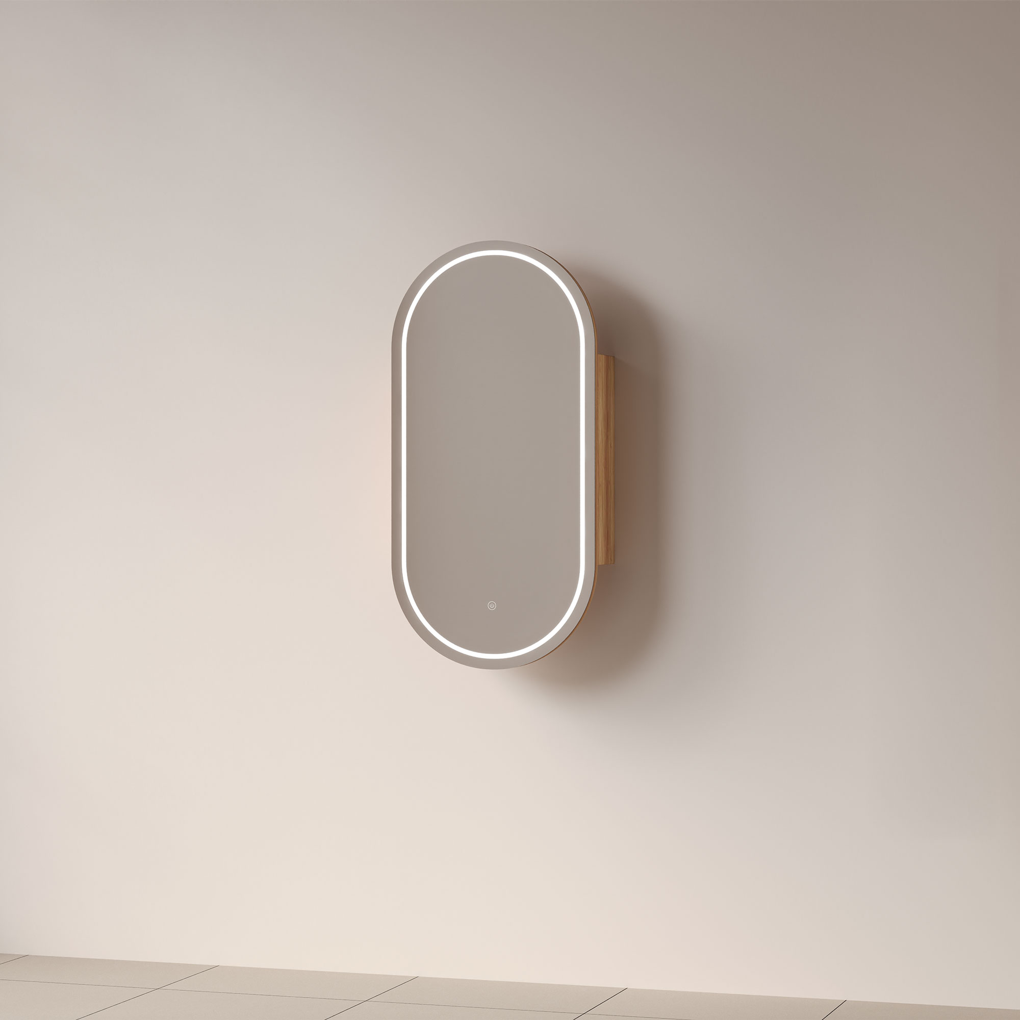 LUMI 450mm Front-Lit Pill LED Mirror Cabinet with Sensor & Demister - Acacia