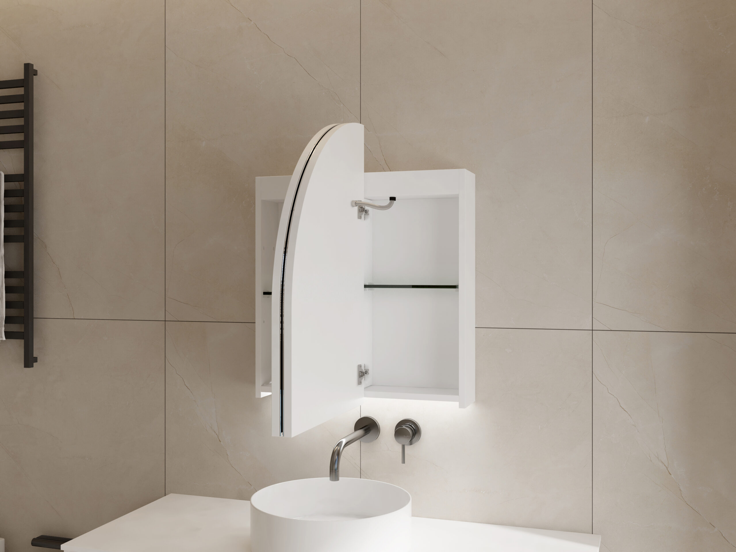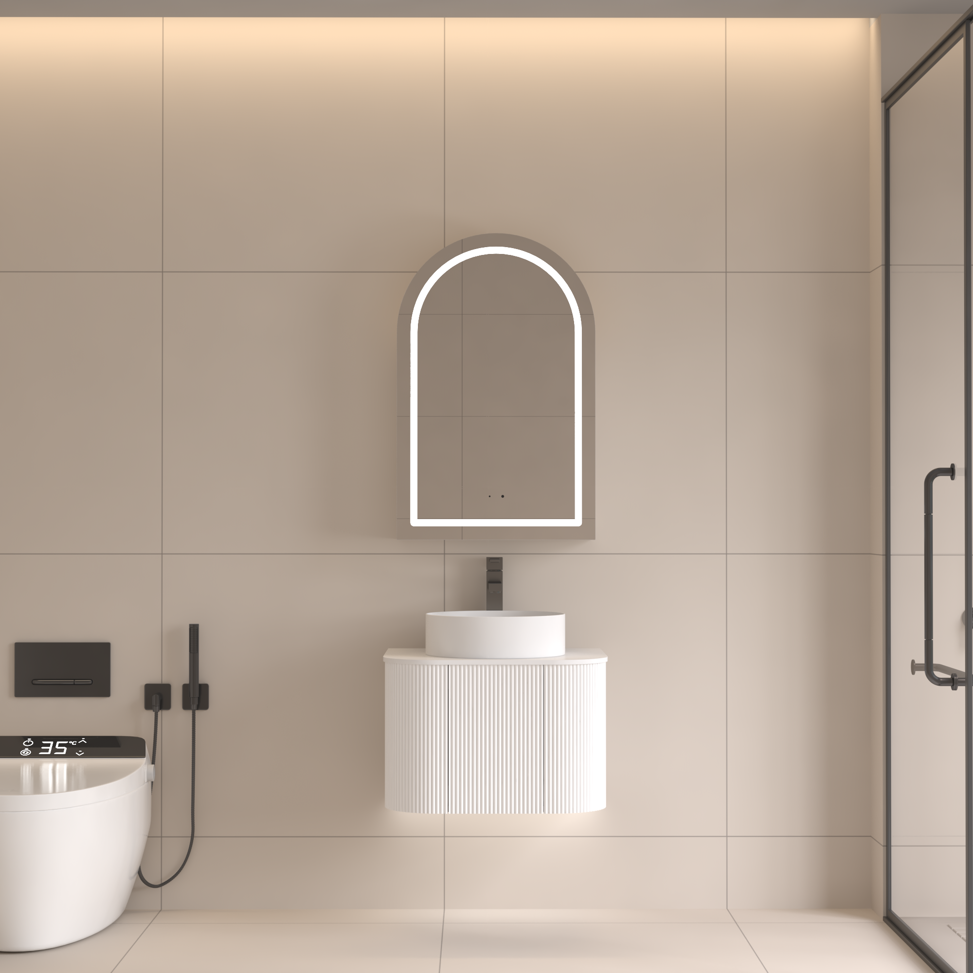 ARIA 550mm Front-Lit Arch LED Mirror Cabinet with Sensor & Demister – Matte White