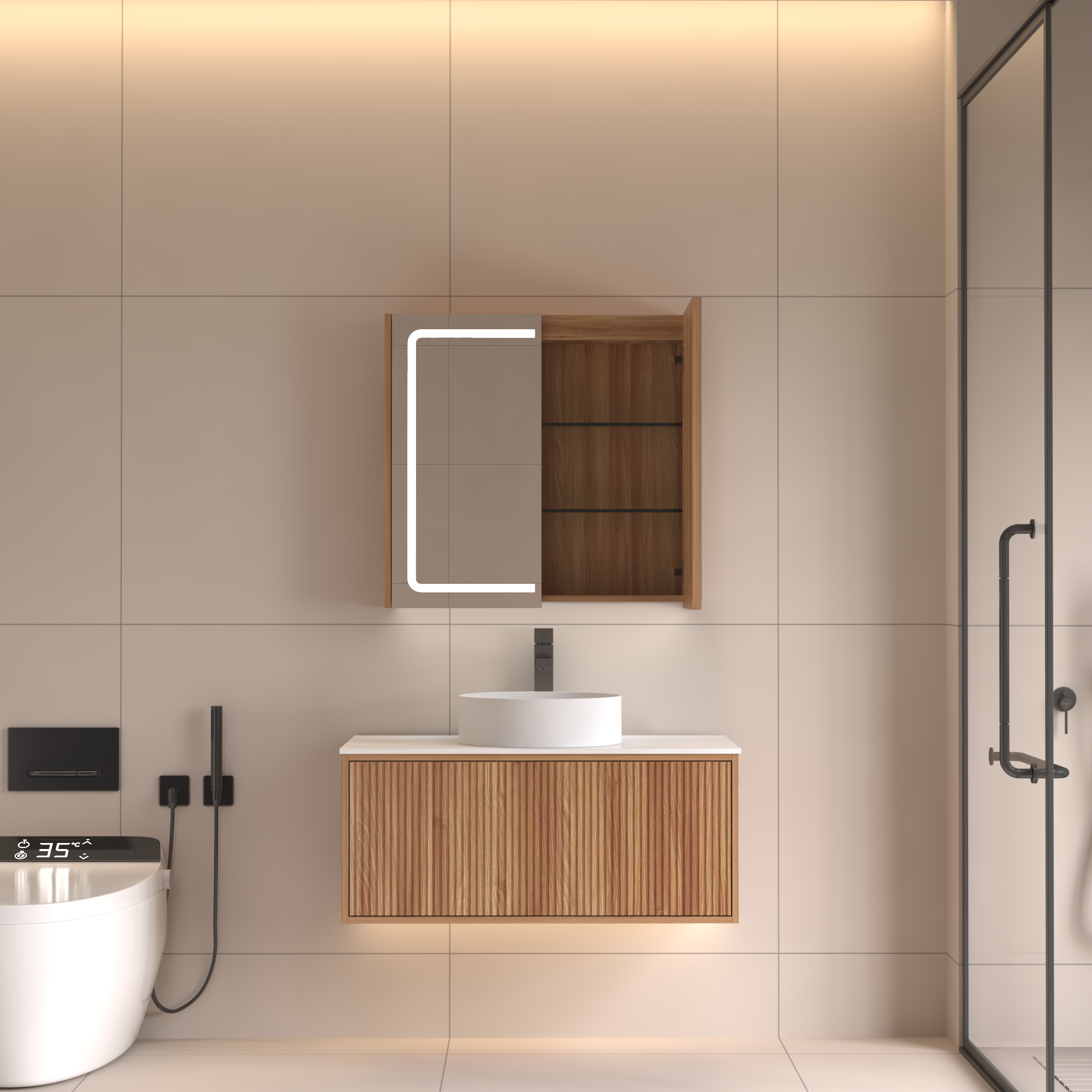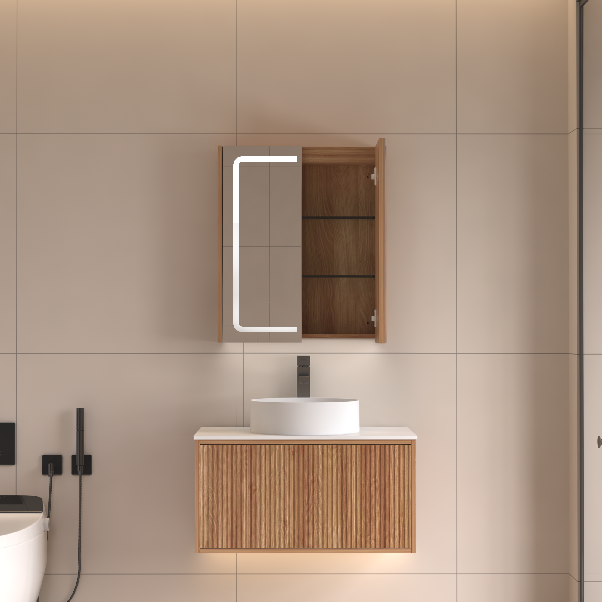 Lumina 900mm Bottom-Lit Cabinet with Sensor & Demister – Acacia