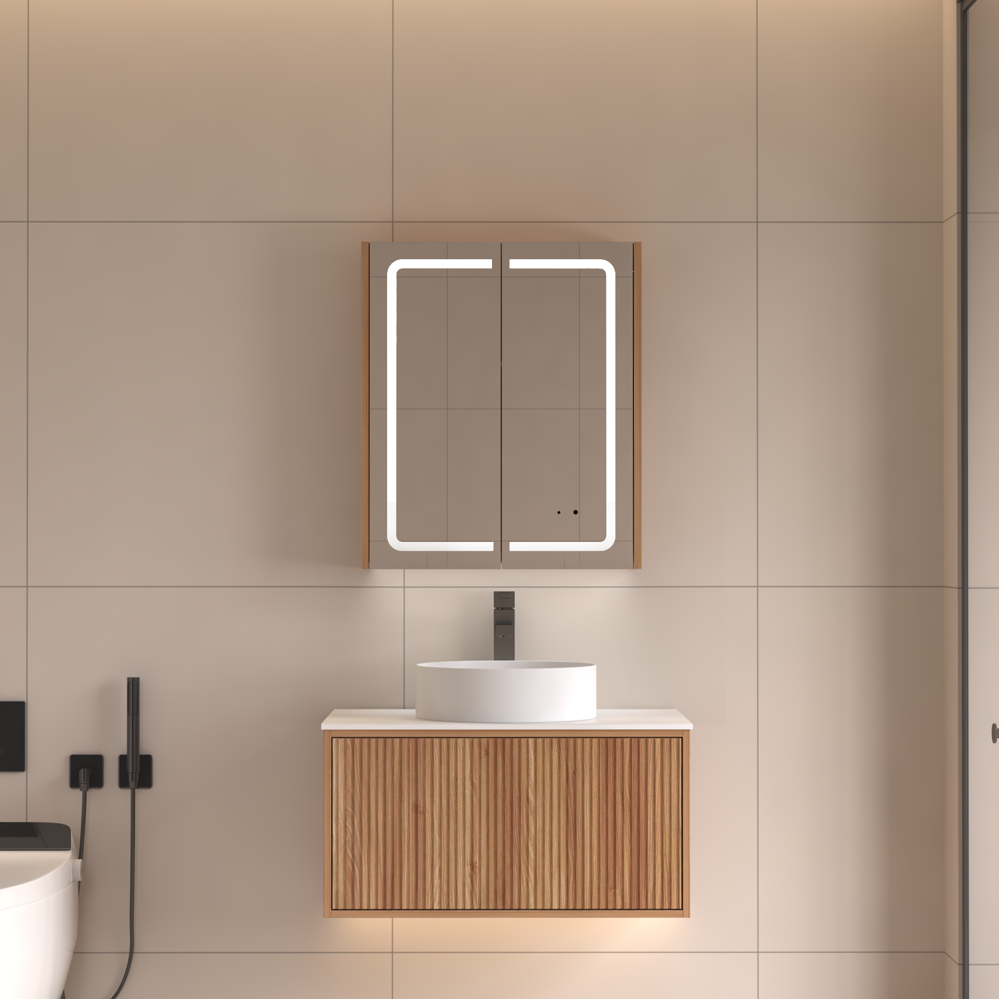 Lumina 750mm Front & Bottom-Lit LED Mirror Cabinet with Sensor & Demister – Acacia