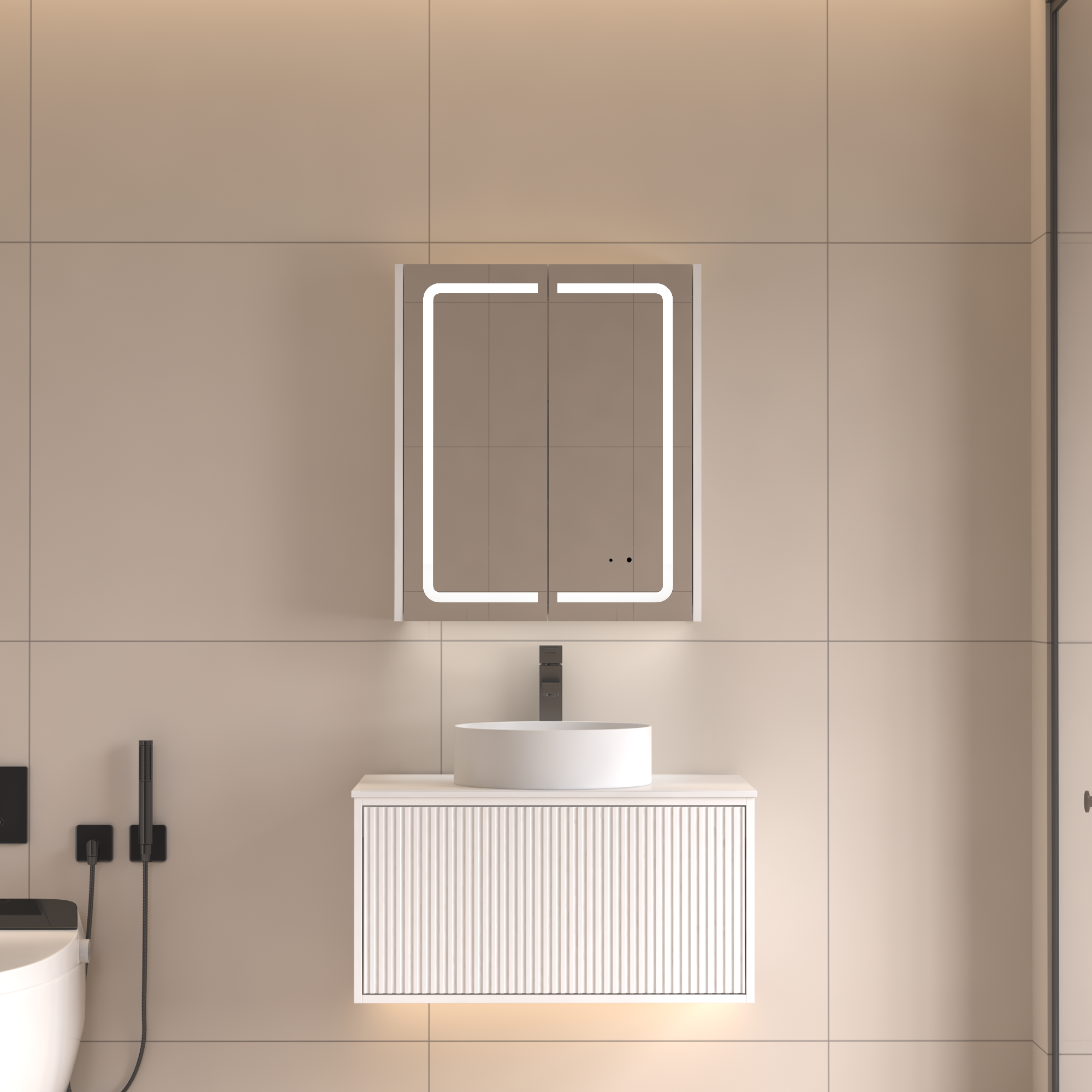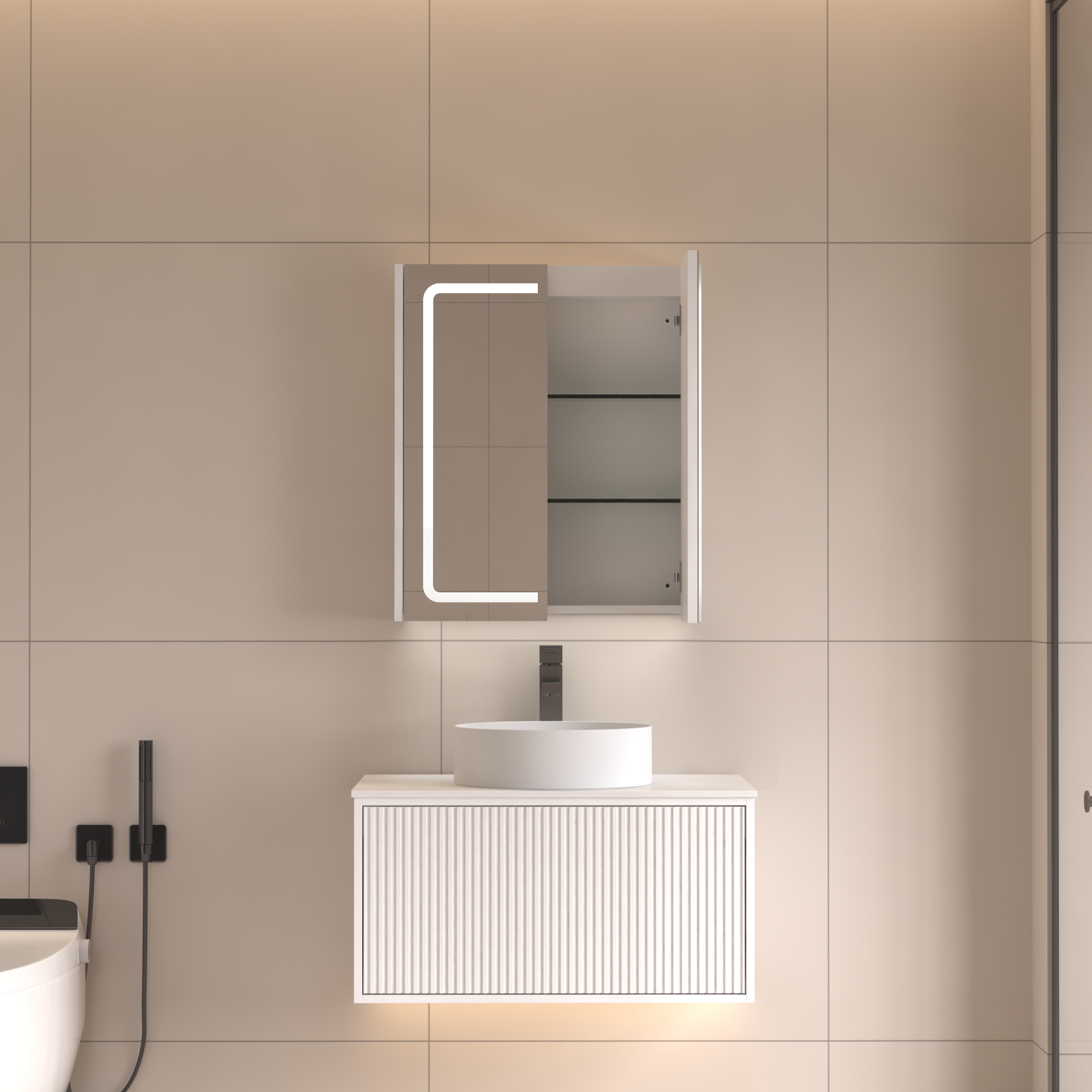 Lumina 750mm Front & Bottom-Lit LED Mirror Cabinet with Sensor & Demister – Matte White