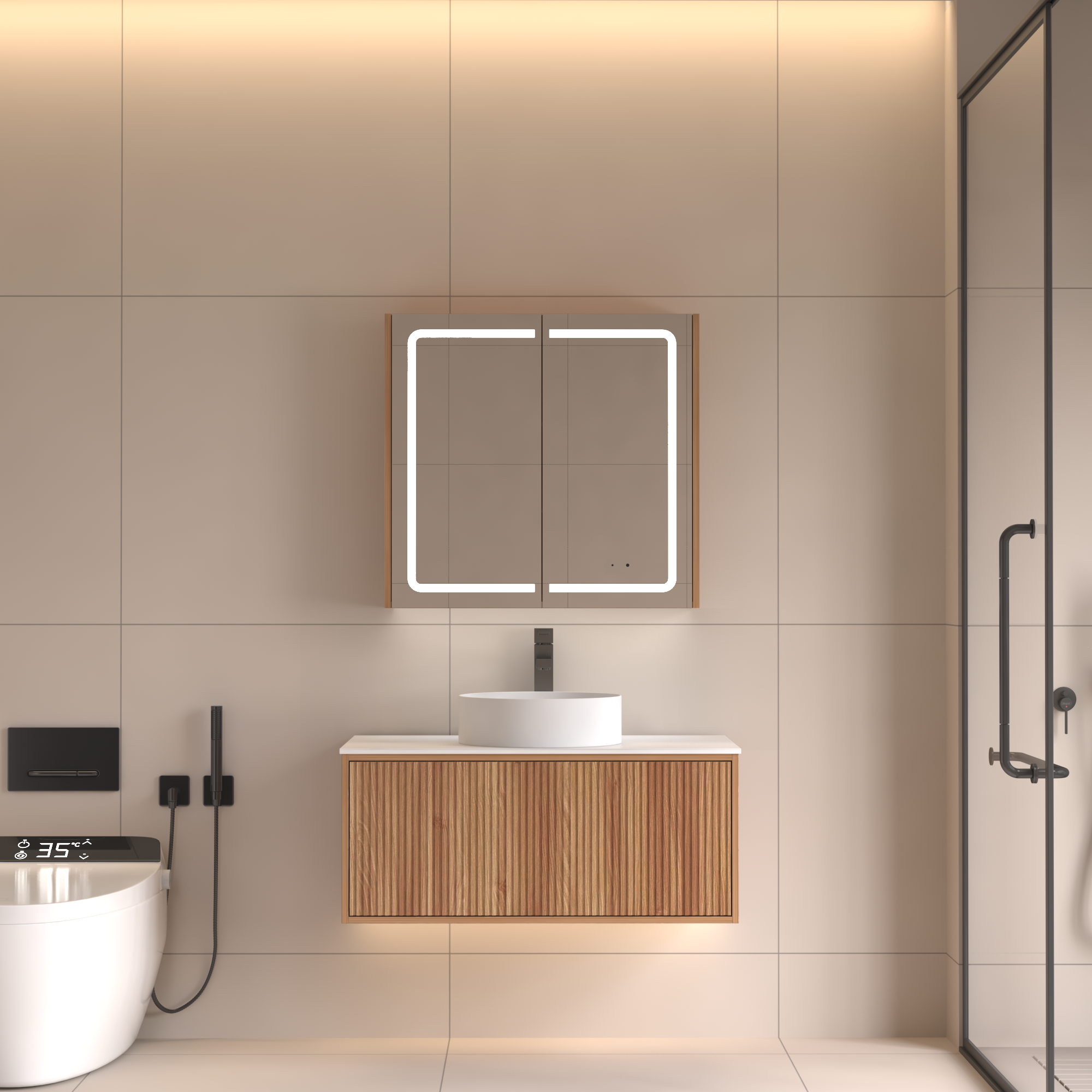 Lumina 900mm Front & Bottom-Lit LED Mirror Cabinet with Sensor & Demister – Acacia