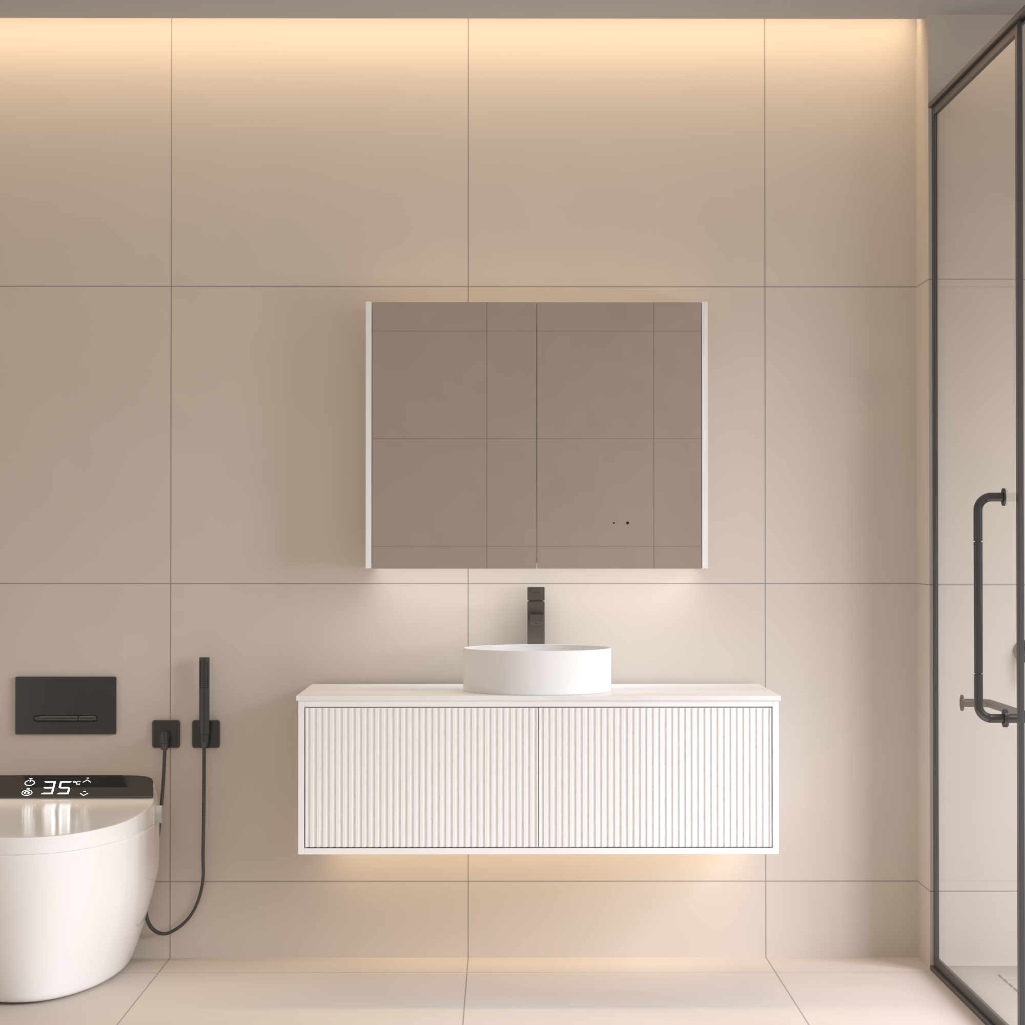 Our floor-standing vanities offer generous storage space, allowing you to organize your towels, toiletries, and bathroom accessories with ease. The full base design adds visual stability while eliminating the need for extra storage furniture, helping you maintain a clutter-free bathroom.