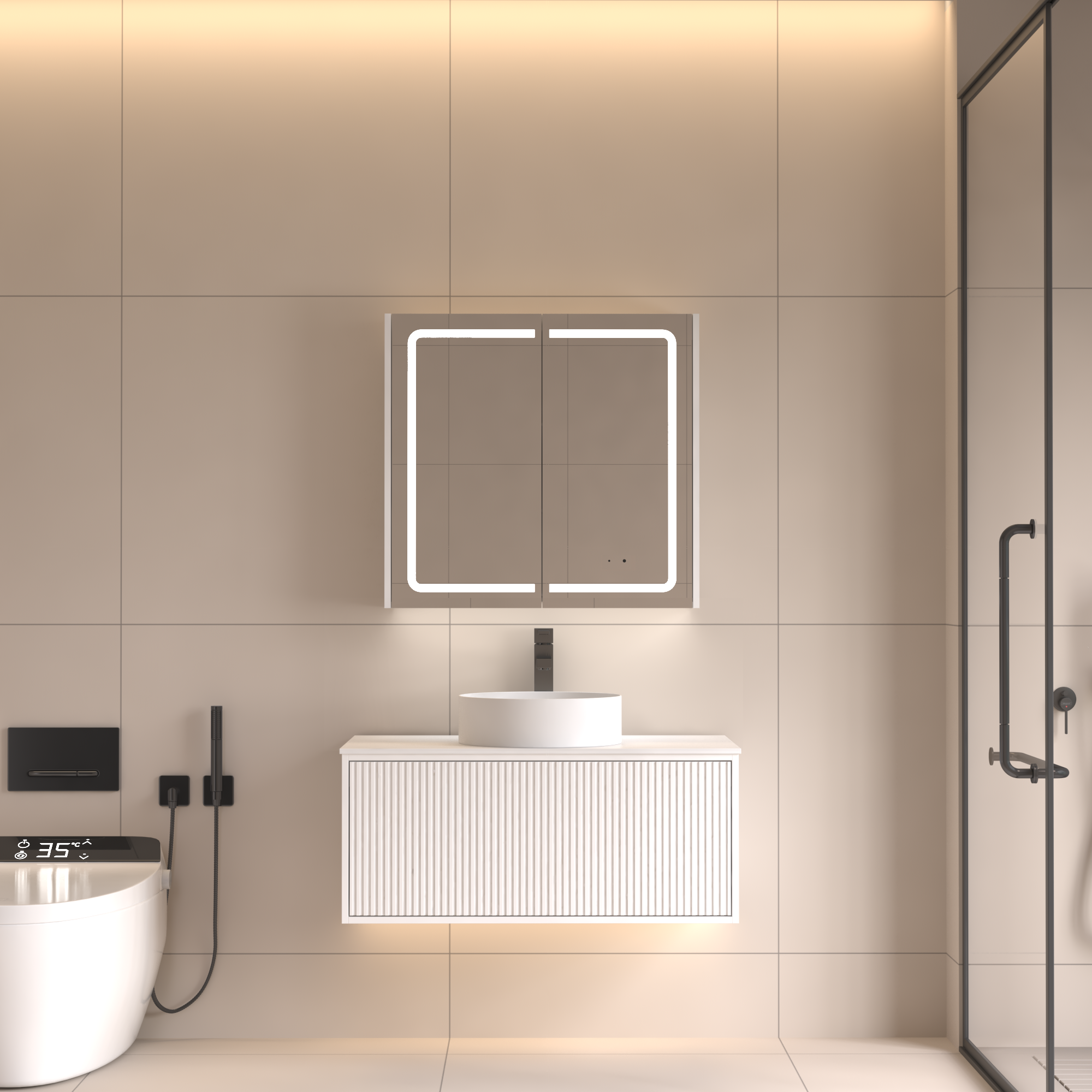 Lumina 900mm Front & Bottom-Lit LED Mirror Cabinet with Sensor & Demister – Matte White