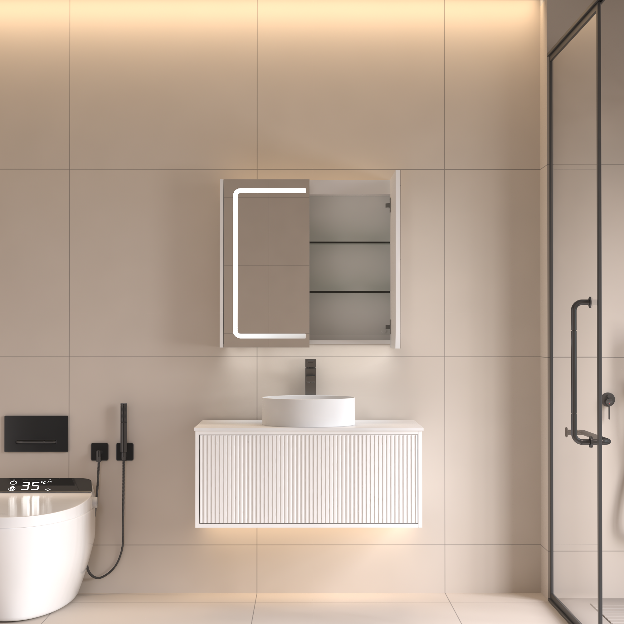 Lumina 900mm Bottom-Lit Cabinet with Sensor & Demister – Matte White