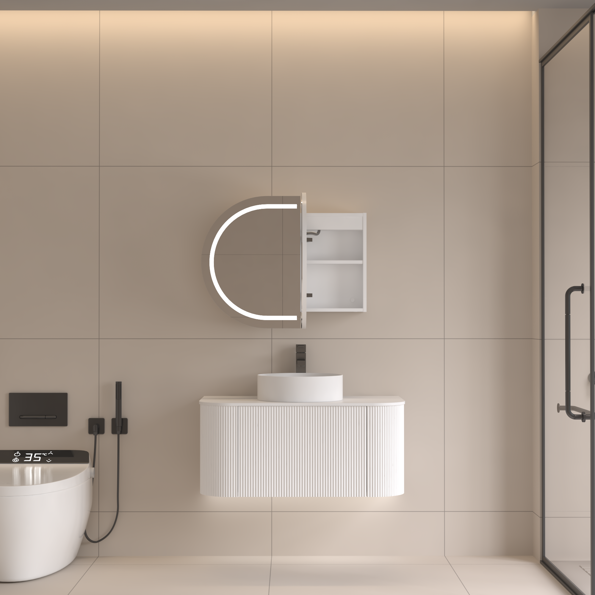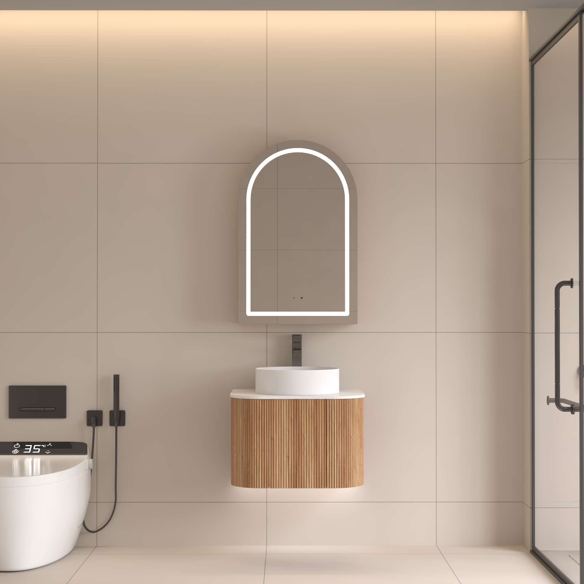 ARIA 550mm Front-Lit Arch LED Mirror Cabinet with Sensor & Demister – Acacia