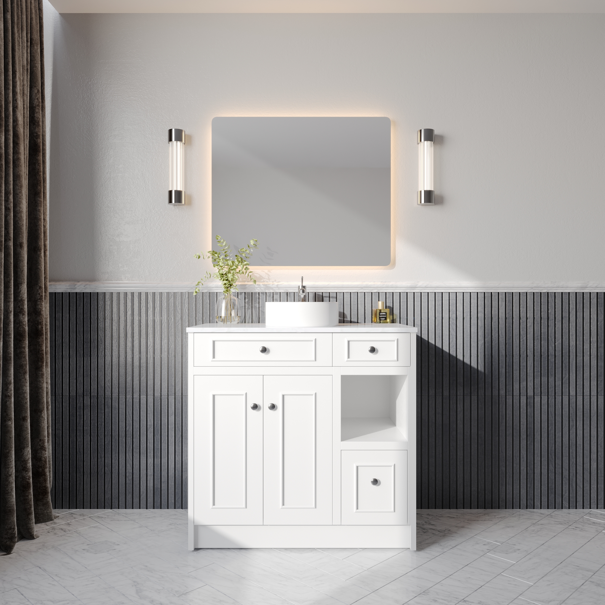No more overstuffed closets or cluttered counters — our floor-standing vanities offer generous storage without sacrificing style. Thoughtfully designed with internal shelving and soft-close drawers to protect finishes over time.