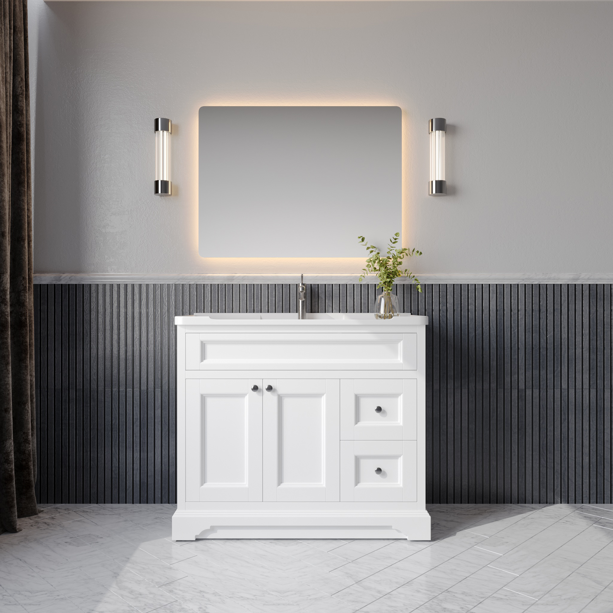 Our floor-standing vanities offer generous storage space, allowing you to organize your towels, toiletries, and bathroom accessories with ease. The full base design adds visual stability while eliminating the need for extra storage furniture, helping you maintain a clutter-free bathroom.