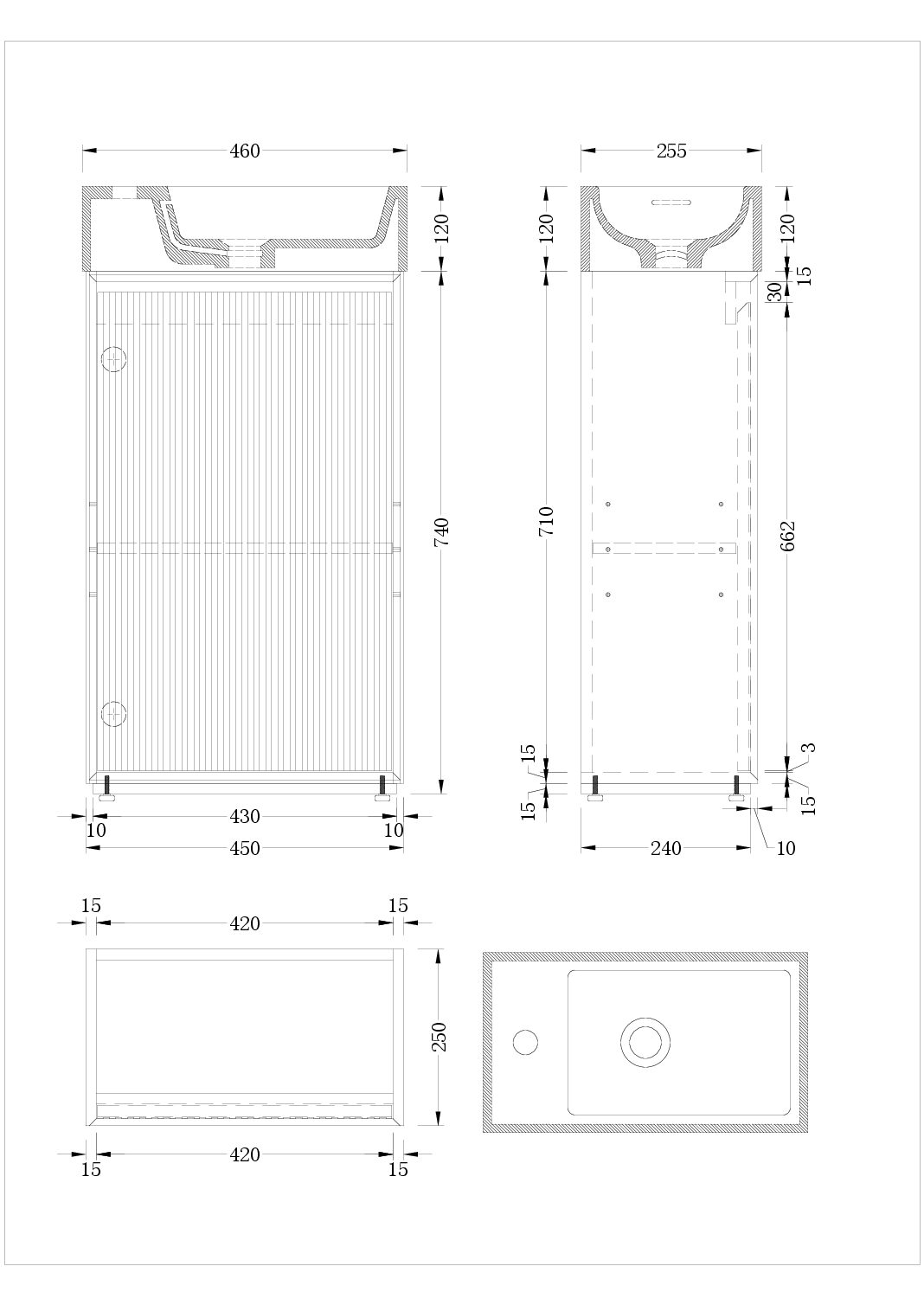 Vanity Dimensions: 450W × 250D × 740H mm
