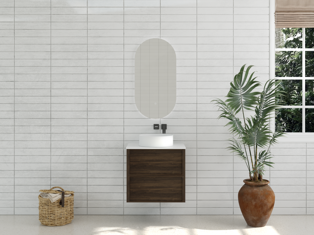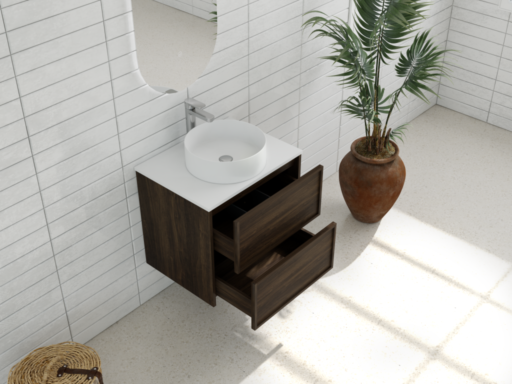 Model:Aura 600mm Wall-Hung Vanity – Walnut