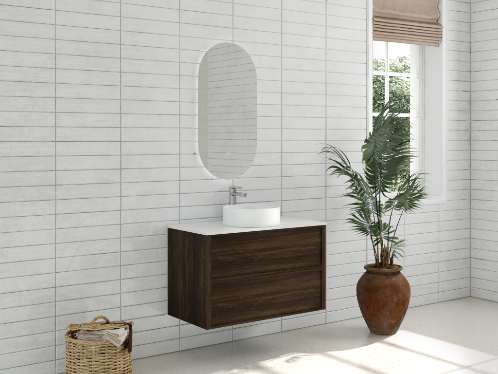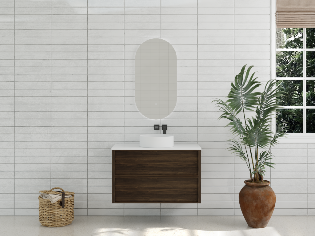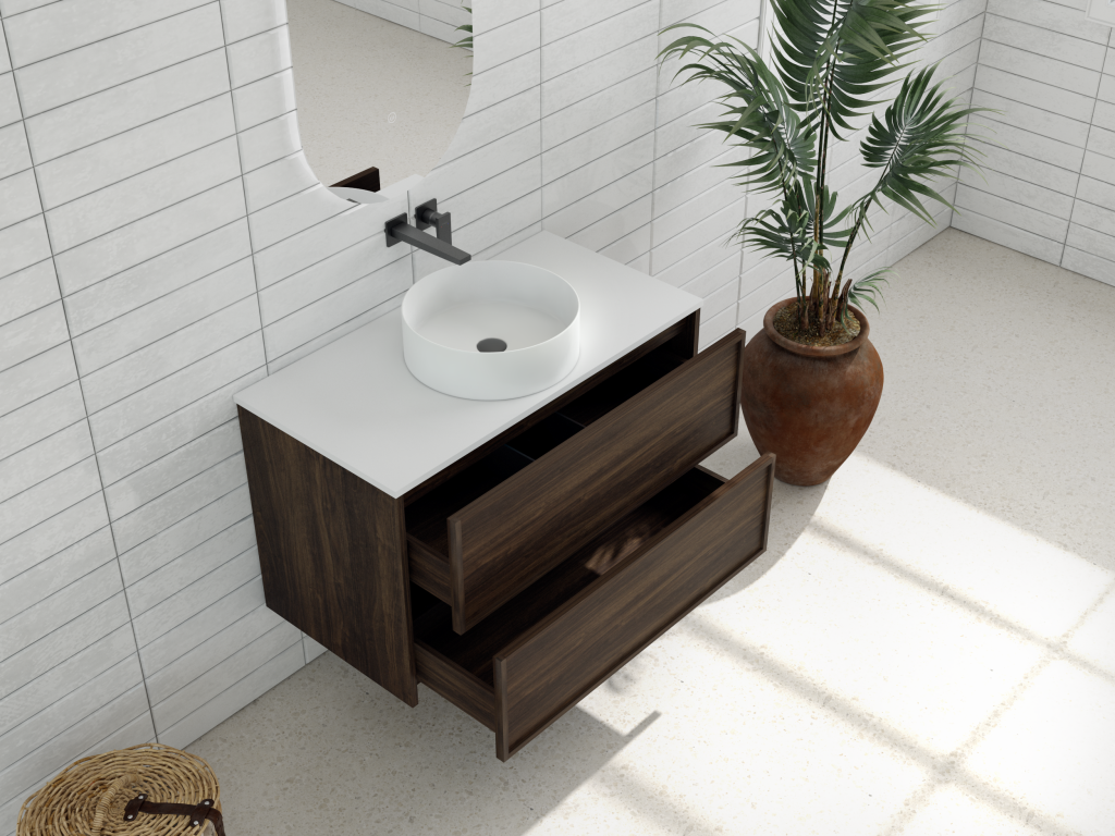 Aura 900mm Wall-Hung Vanity – Walnut