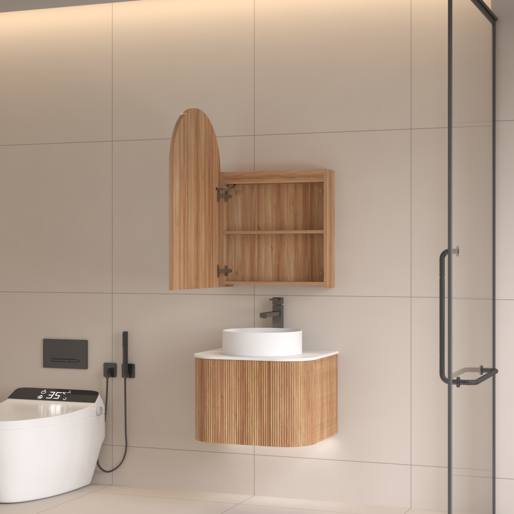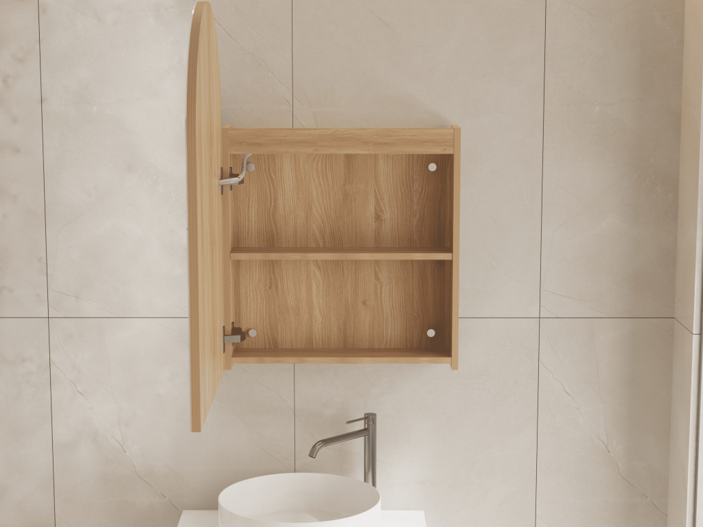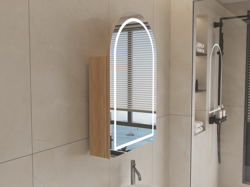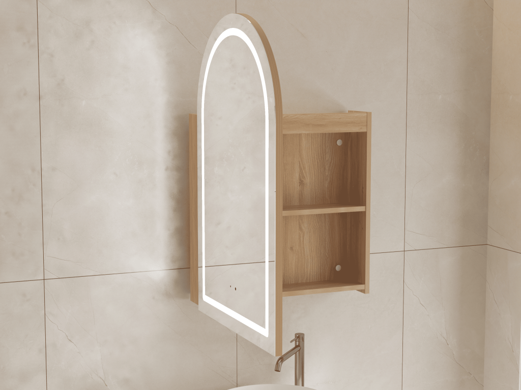 ARIA 550mm Front-Lit Arch LED Mirror Cabinet with Sensor & Demister – Acacia