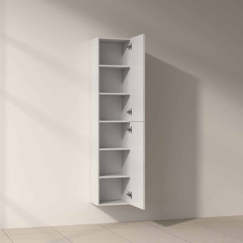 Aura 1600mm Wall-Hung Tall Towel Cabinet – Matte White