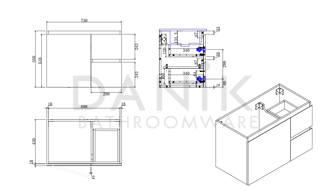 - Cabinet Dimensions: 730mm (W) x 430mm (D) x 550mm (H)
