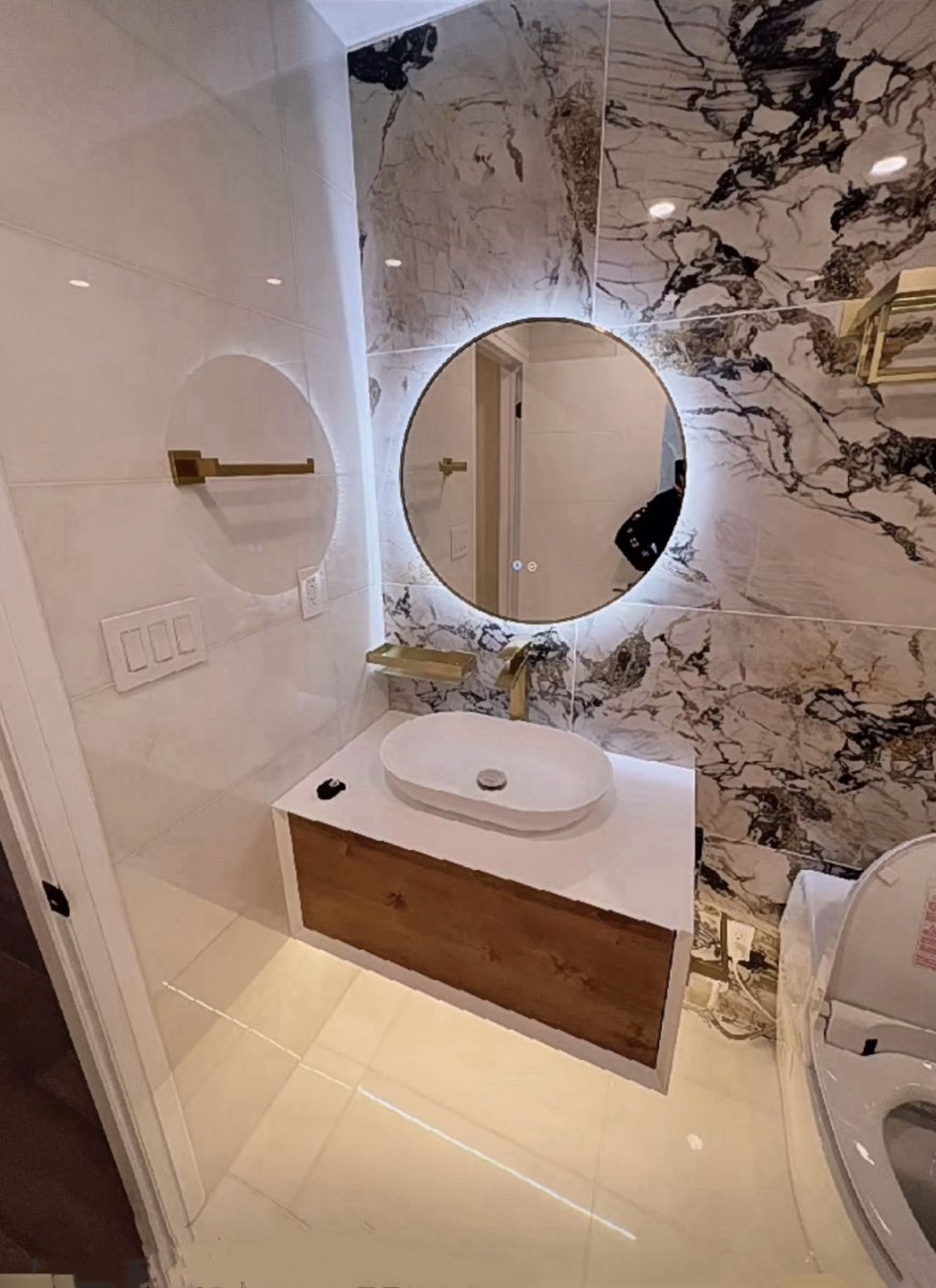 The ORA Framed Round Back-Lit LED Mirror in Brushed Gold blends timeless elegance with modern technology, making it a stunning centerpiece for contemporary bathrooms. Its round silhouette is accentuated by a slim brushed gold aluminium frame, while soft back-lighting creates a radiant halo effect that elevates both style and functionality.