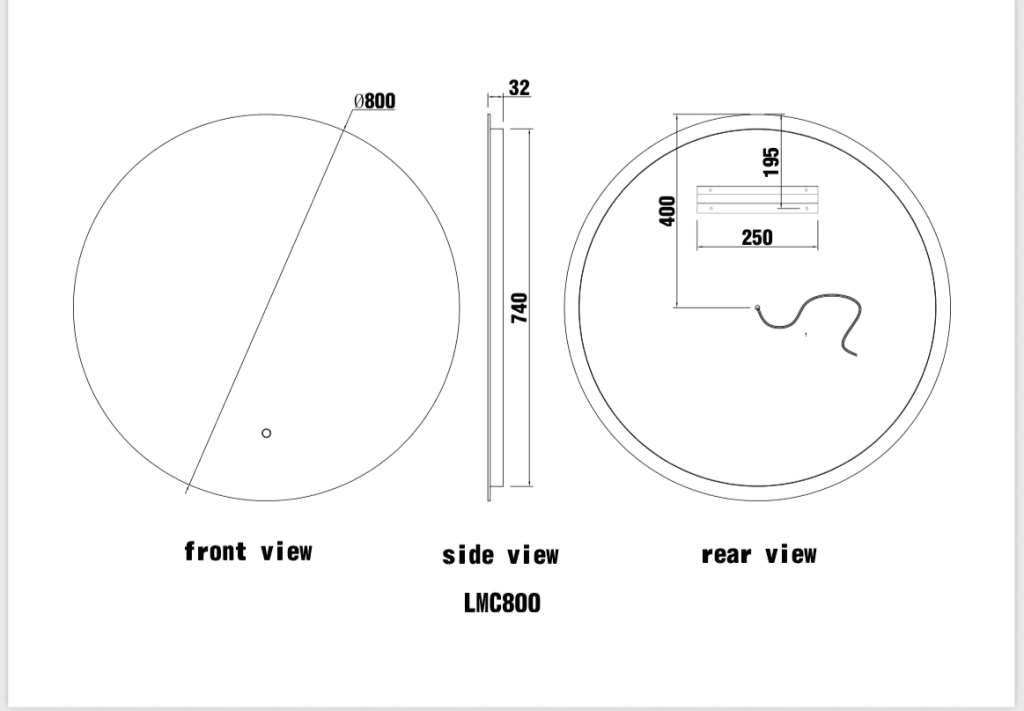 - Model: ORA 800 Frameless Round Back-Lit LED Mirror