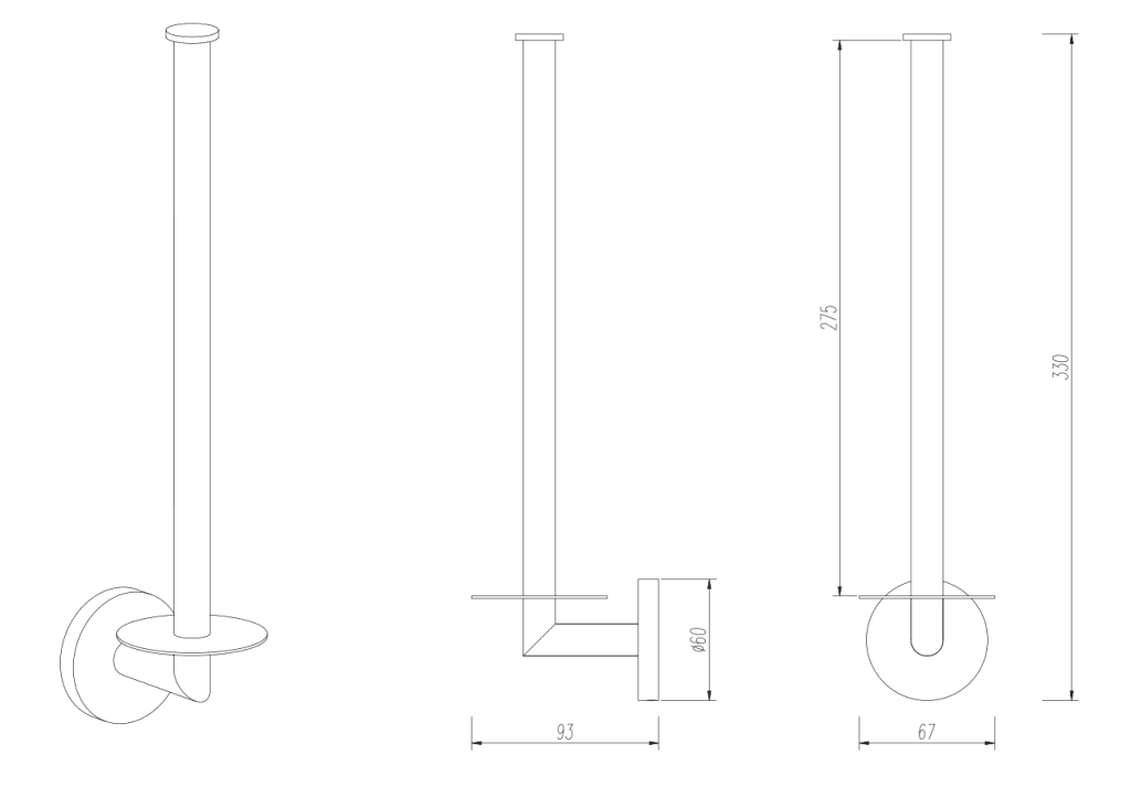 - Smart Design: Features a built-in circular base plate (stopper) at the bottom of the rod, which provides a stable shelf for the roll to sit on, keeping it perfectly upright and preventing it from binding against the curve.