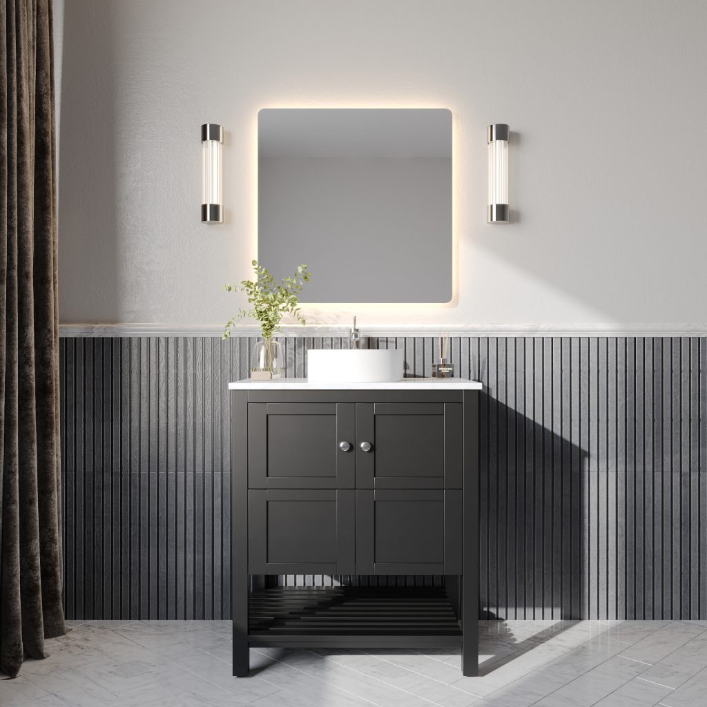 Vanity Top Options: Under-mounted basin or countertop with vessel basin (no extra cost)