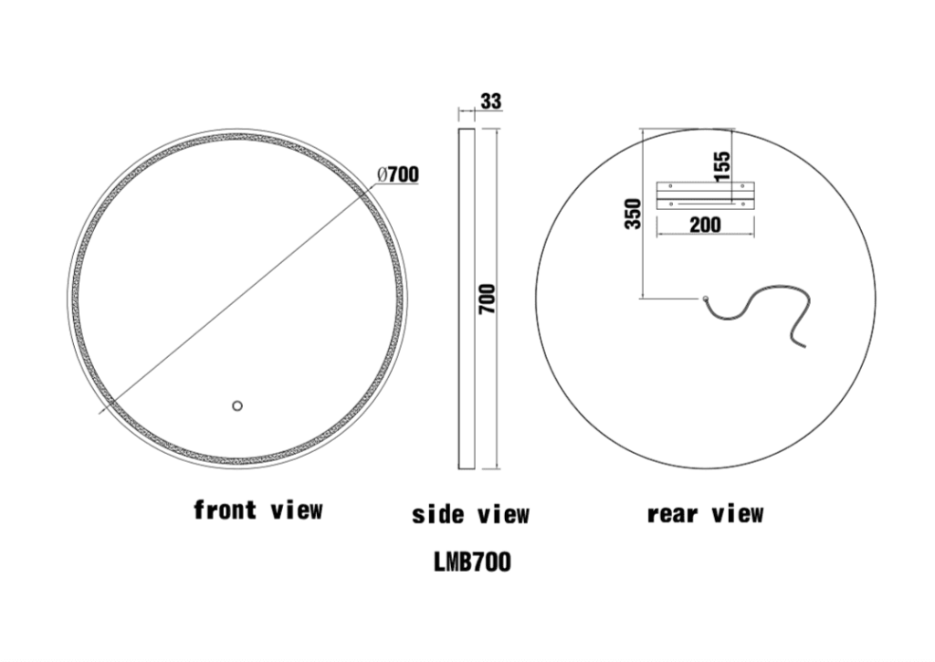 - Model: ORA 700 Framed Round Front-Lit Mirror – Matte Black
