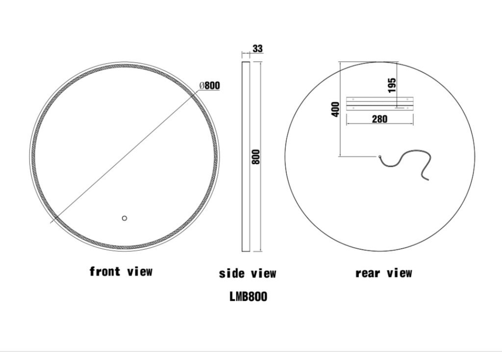 - Design: Round with 12mm acrylic front-light frame & matte black aluminium surround