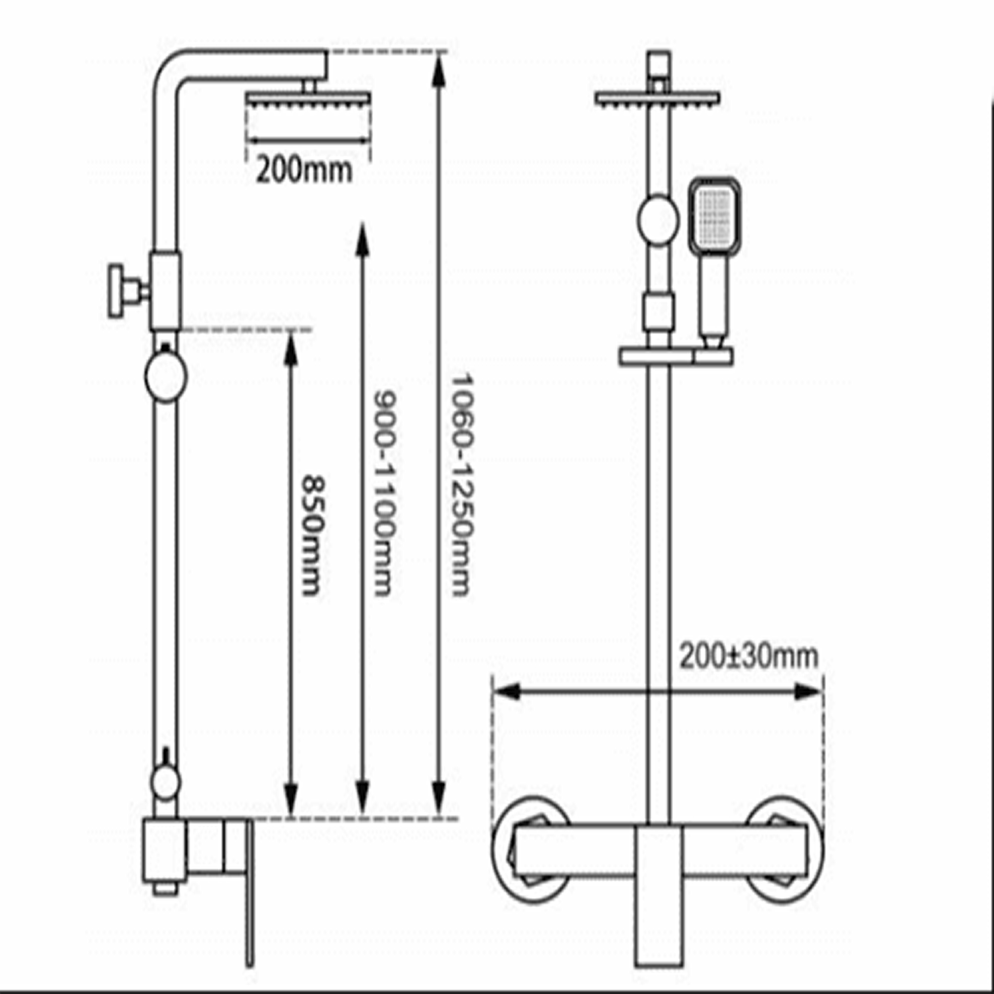 - Overall Adjustable Height: 1060mm – 1250mm (From mixer to top of shower arm)
