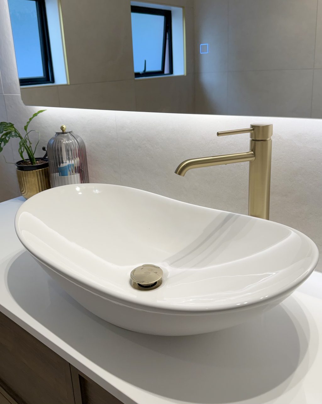 - Luxe Aesthetic: The brushed gold finish offers a refined glow that pairs exceptionally well with marble, stone, or timber textures.
