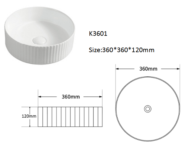 - Available Dimensions: * Option 1: 360mm (Diameter) x 120mm (H)