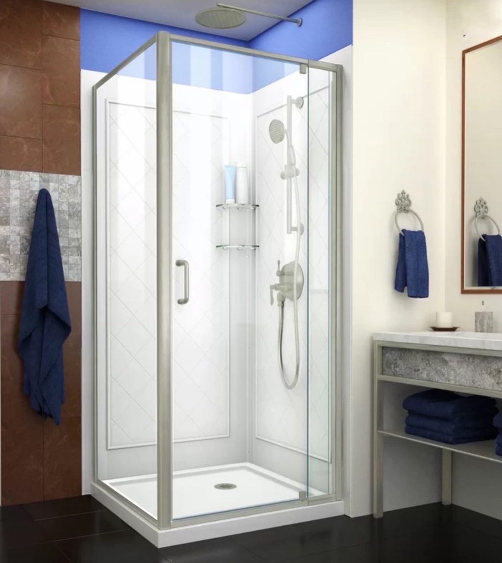 Including shower door glass with frame and fittings, wall liner