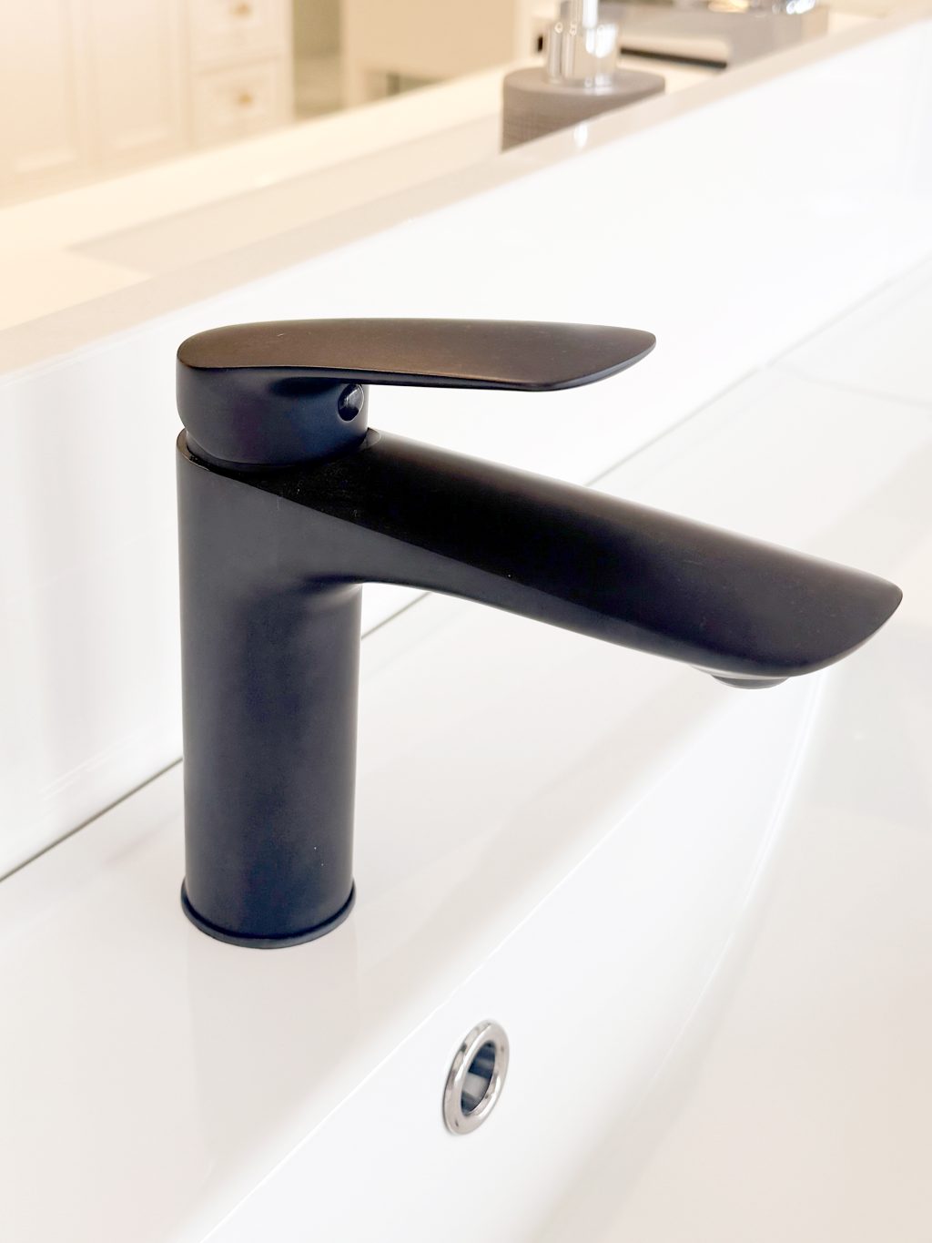 • Designer Silhouette: The curved profile looks stunning in matte black, creating a crisp geometric contrast against white basins.