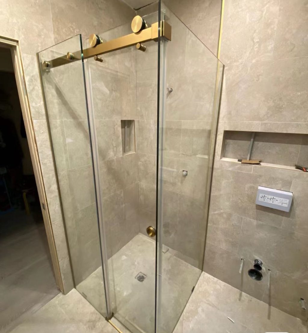 Frameless Glass 1500wx900dmm Sliding Door Brushed Gold