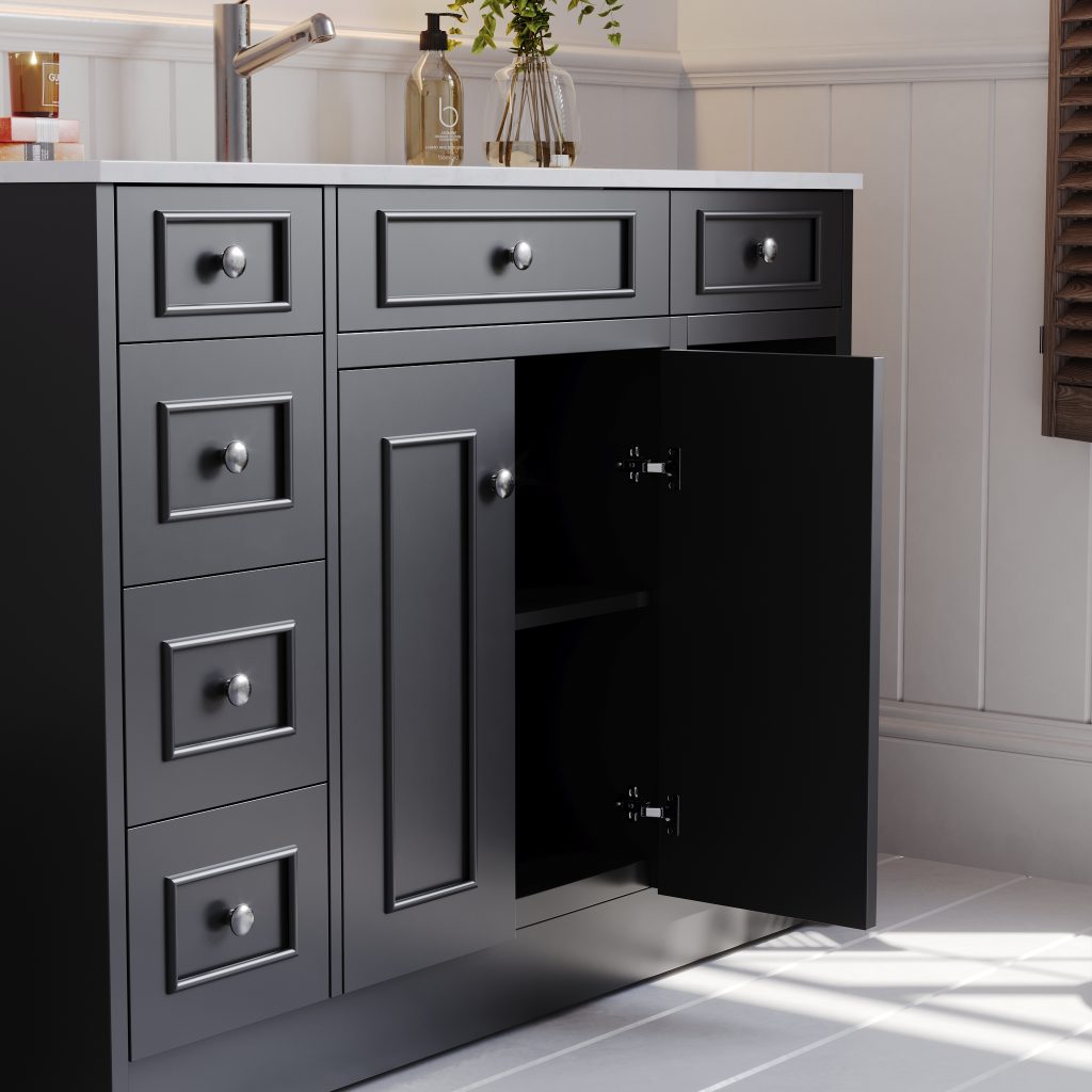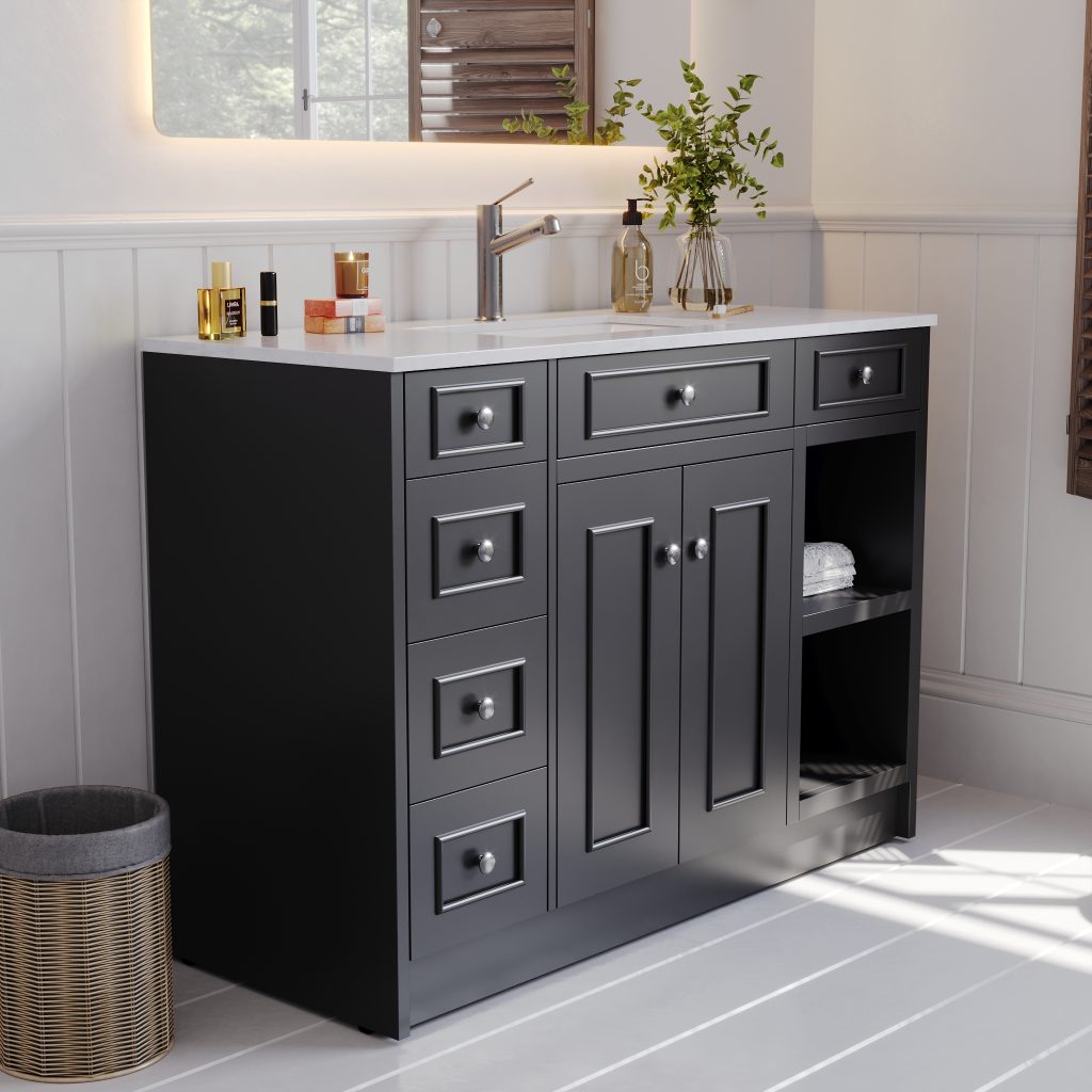 Caroline 1200mm Solid Wood Floor-Standing Vanity – Hampton Collection – Matte Black
