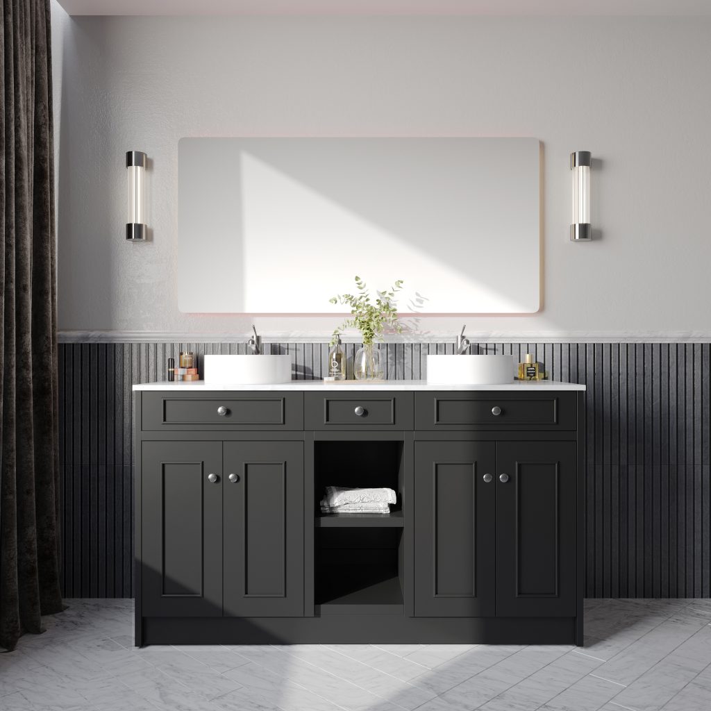 - Under-mounted: Premium quartz top with dual ceramic under-mounted basins for a classic, flush aesthetic.