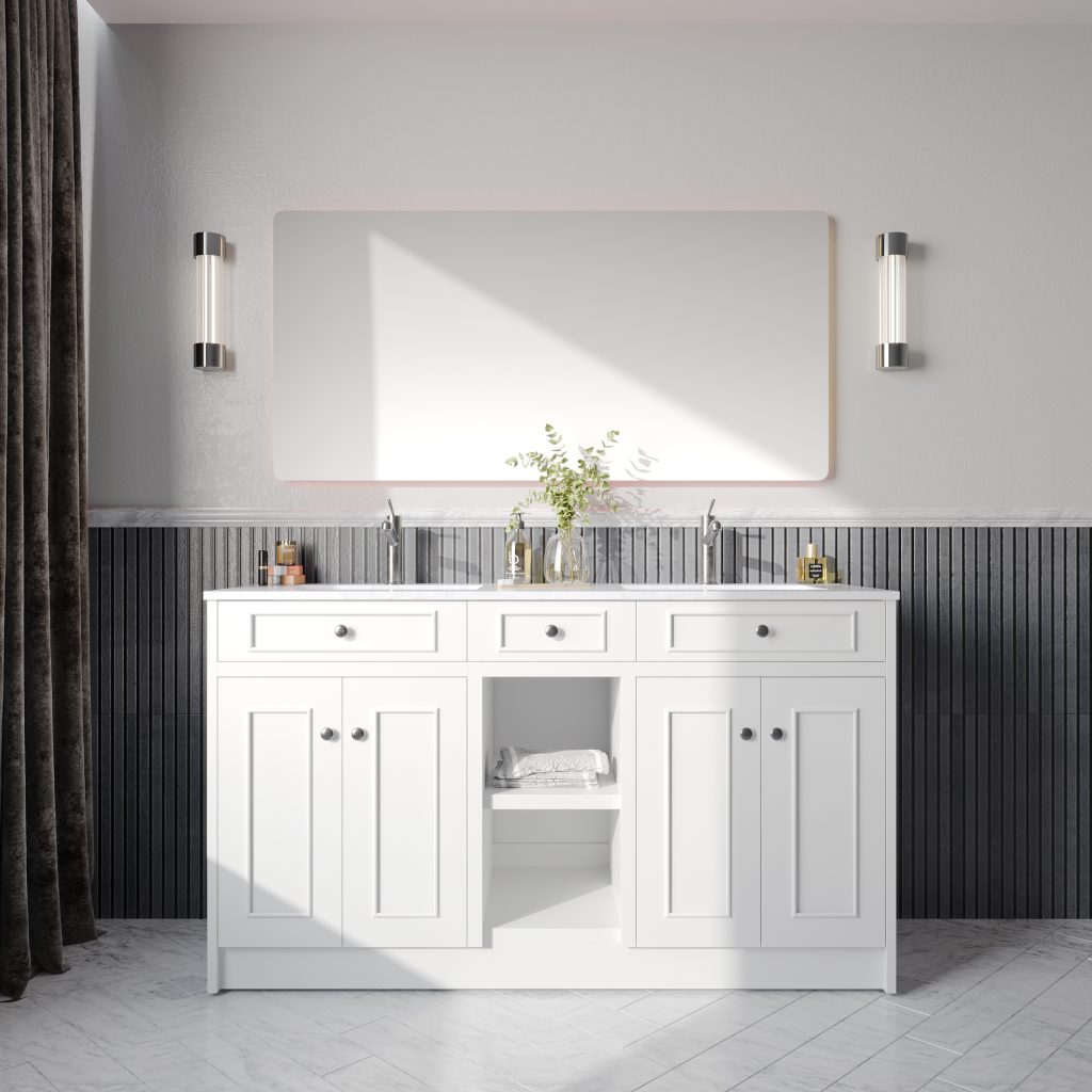Part of the Hampton Collection, the Caroline 1500 unites modern elegance, subtle industrial influences, and warm organic textures. Expertly crafted from solid oak and finished with a meticulous 8-stage process, this vanity is designed to withstand daily use while enhancing the style of your bathroom. Its generous size and dual basin layout make it perfect for households that value both practicality and luxury. Complete the look with the included cultured quartz countertop and an optional matching framed mirror for a cohesive, designer-inspired bathroom.