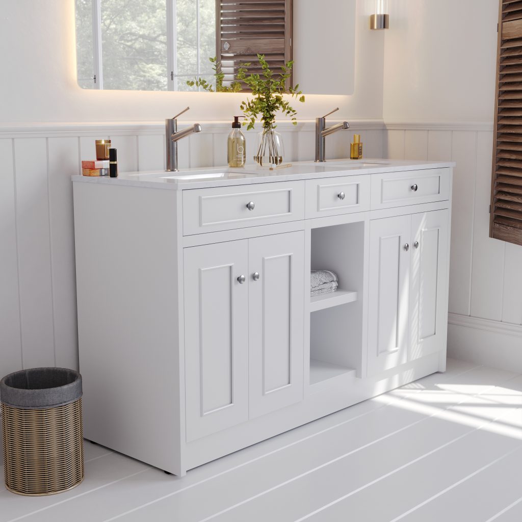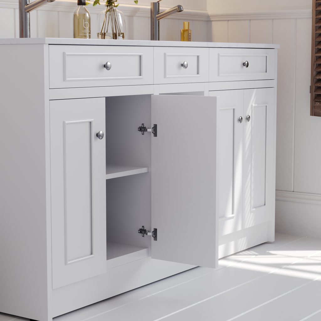 Caroline 1500mm Solid Wood Floor-Standing Vanity – Hampton Collection – Matte White