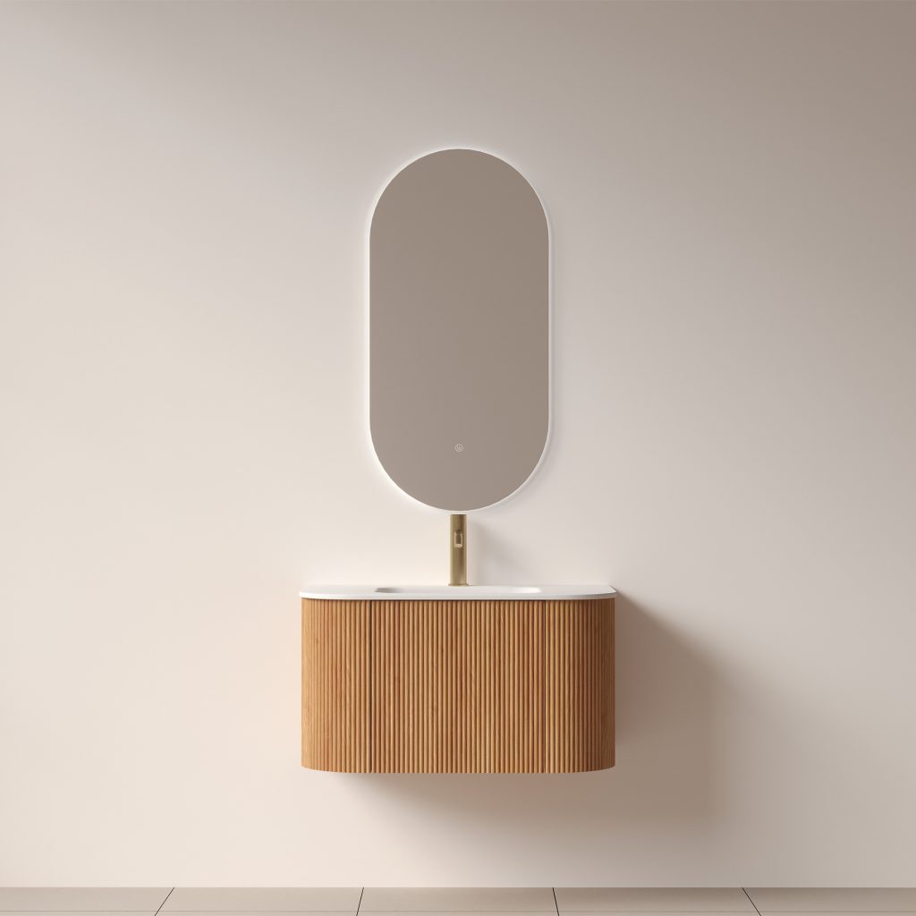 Transform your morning routine with the LUMI 450mm Front-Lit Pill LED Mirror Cabinet. Blending beautiful soft curves with smart technology, this multi-functional cabinet offers an elegant, fog-free reflection while keeping your everyday bathroom essentials neatly hidden away. Finished in a warm, natural Acacia timber look, it brings a touch of organic luxury to your vanity space while the integrated front-lit LED border provides flawless task lighting.
