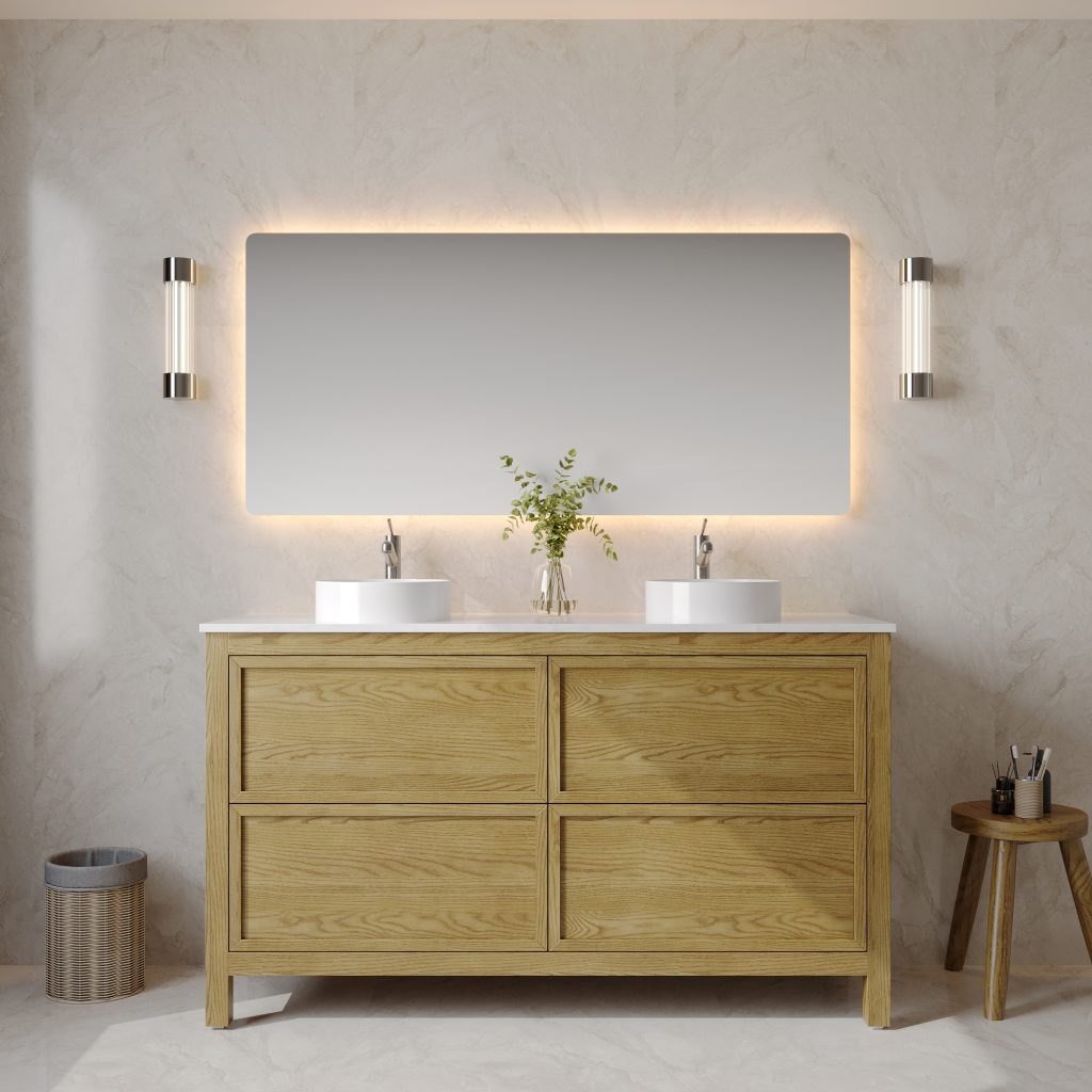 Oakstone 1500mm Solid Wood Floor-Standing Vanity – Hampton Collection – Natural Oak