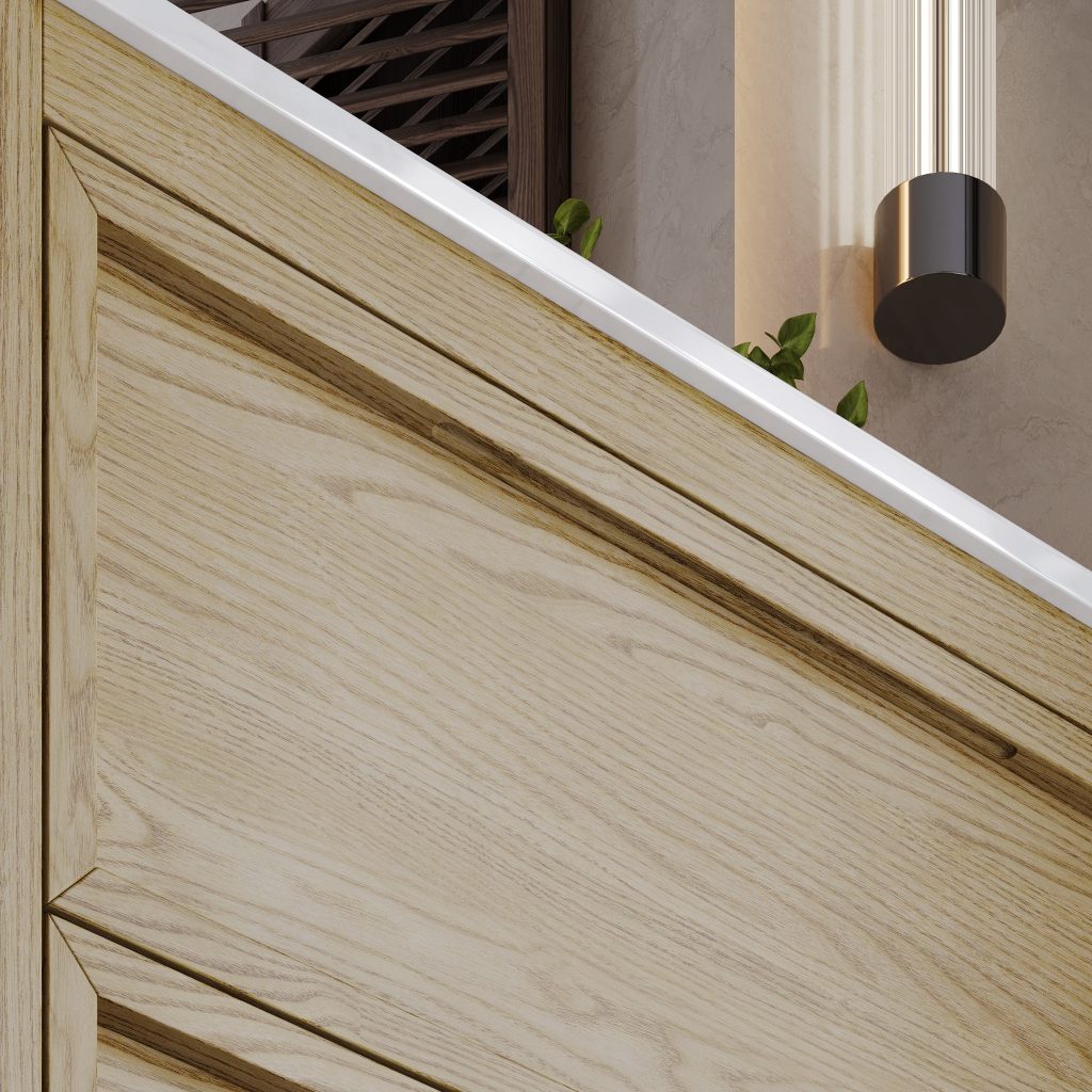 • Recessed finger pull design on drawers for a clean, minimalist aesthetic and ease of use.