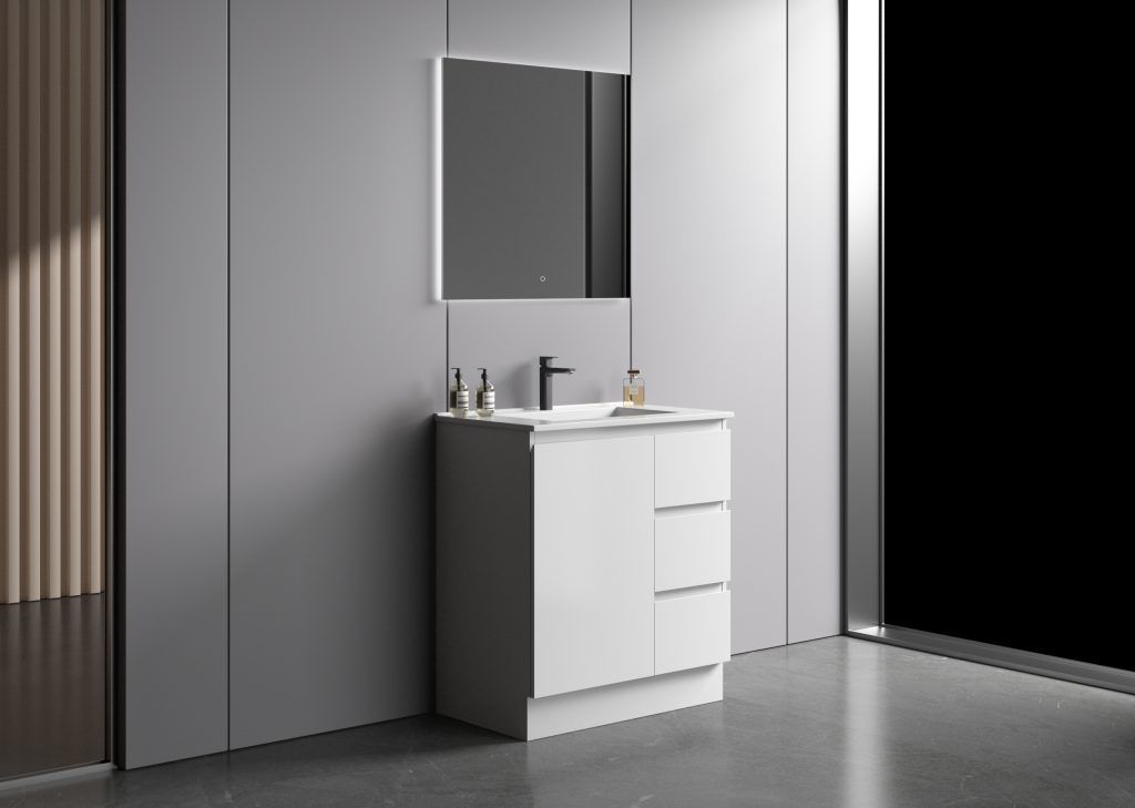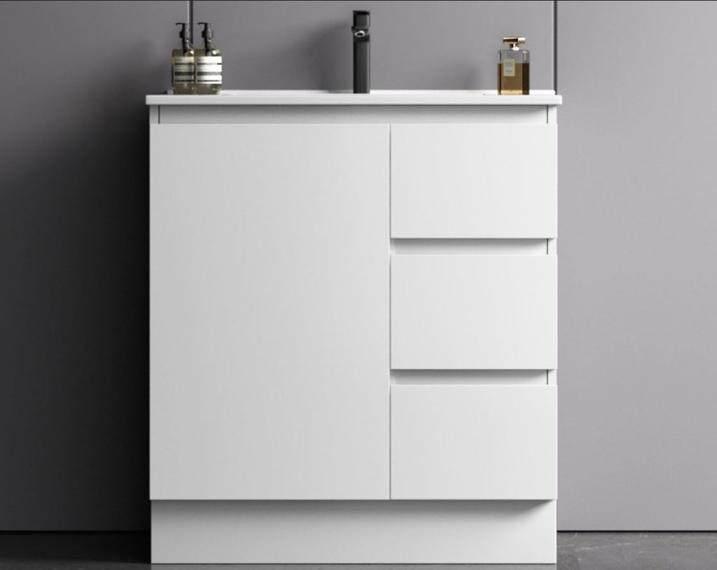Avalon 750mm Premium Plywood Floor-Standing Vanity – Gloss White (Finger Pull Design)
