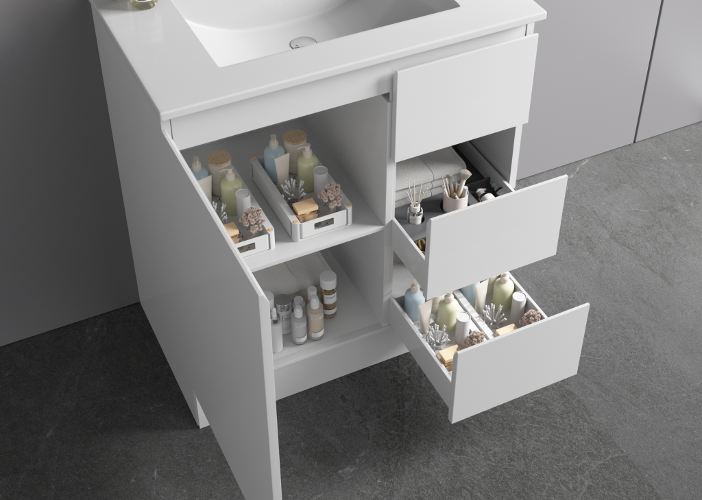 The Avalon Collection brings together contemporary styling and practical design, crafted with premium plywood for a modern yet durable bathroom solution. Designed for everyday living, each vanity balances clean lines with functional storage, making it the perfect choice for both family bathrooms and compact spaces. Finished in sleek gloss white and paired with a durable ceramic top, Avalon vanities offer timeless appeal with long-lasting performance. The finger pull option provides a handle-free, minimalist look for those who prefer seamless bathroom aesthetics.