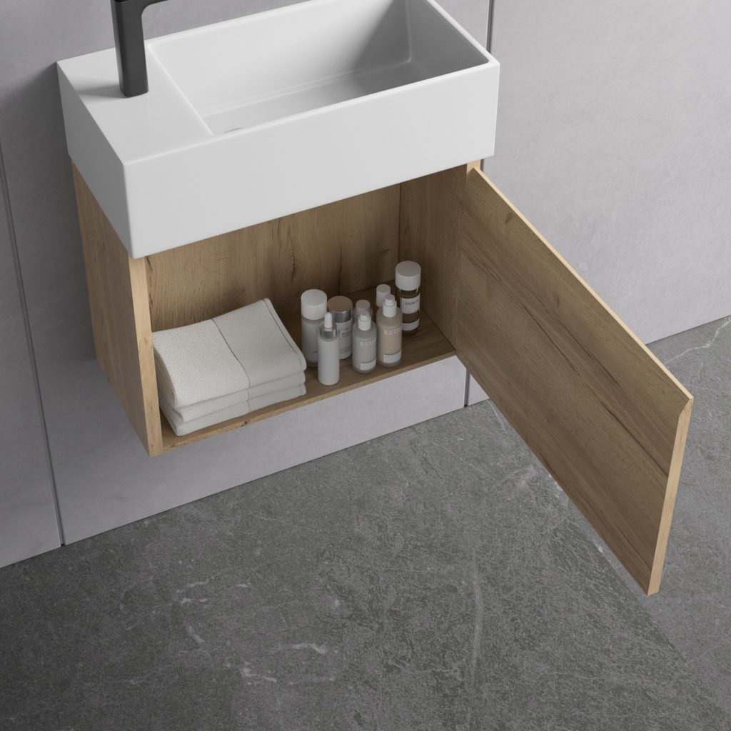• Compact Design: At just 480mm wide and 240mm deep, this vanity is perfect for powder rooms and smaller bathrooms.