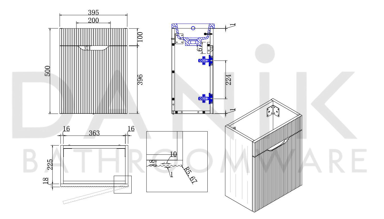Dimensions: 395mm (W) × 240mm (D) × 500mm (H) (without basin)
