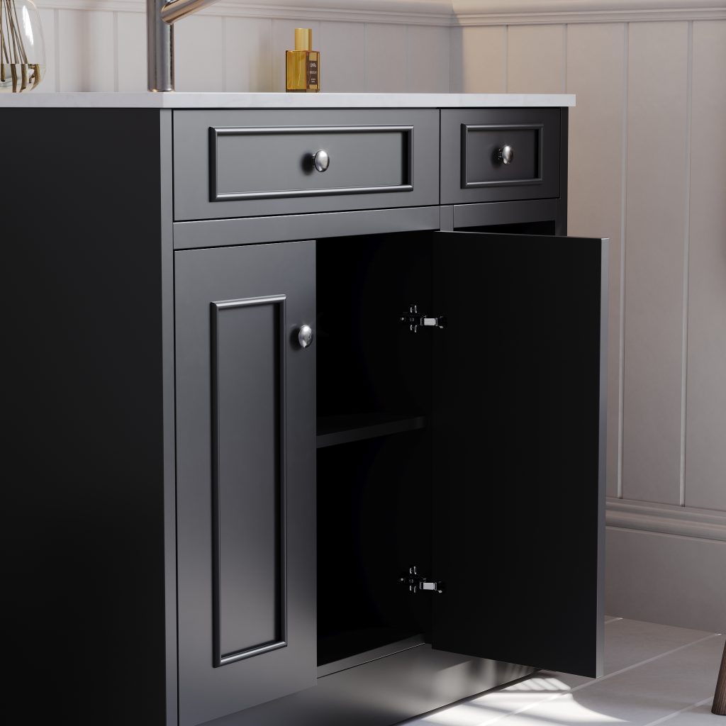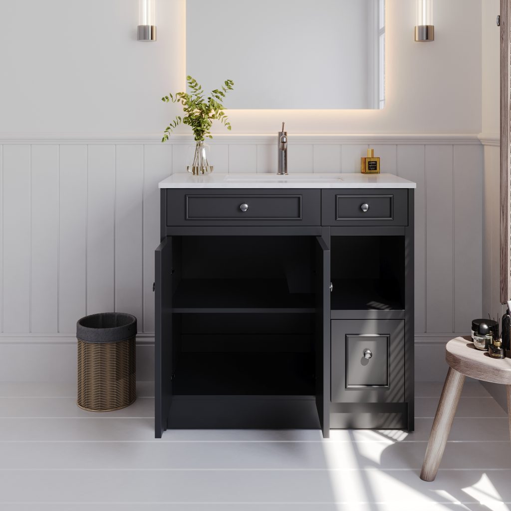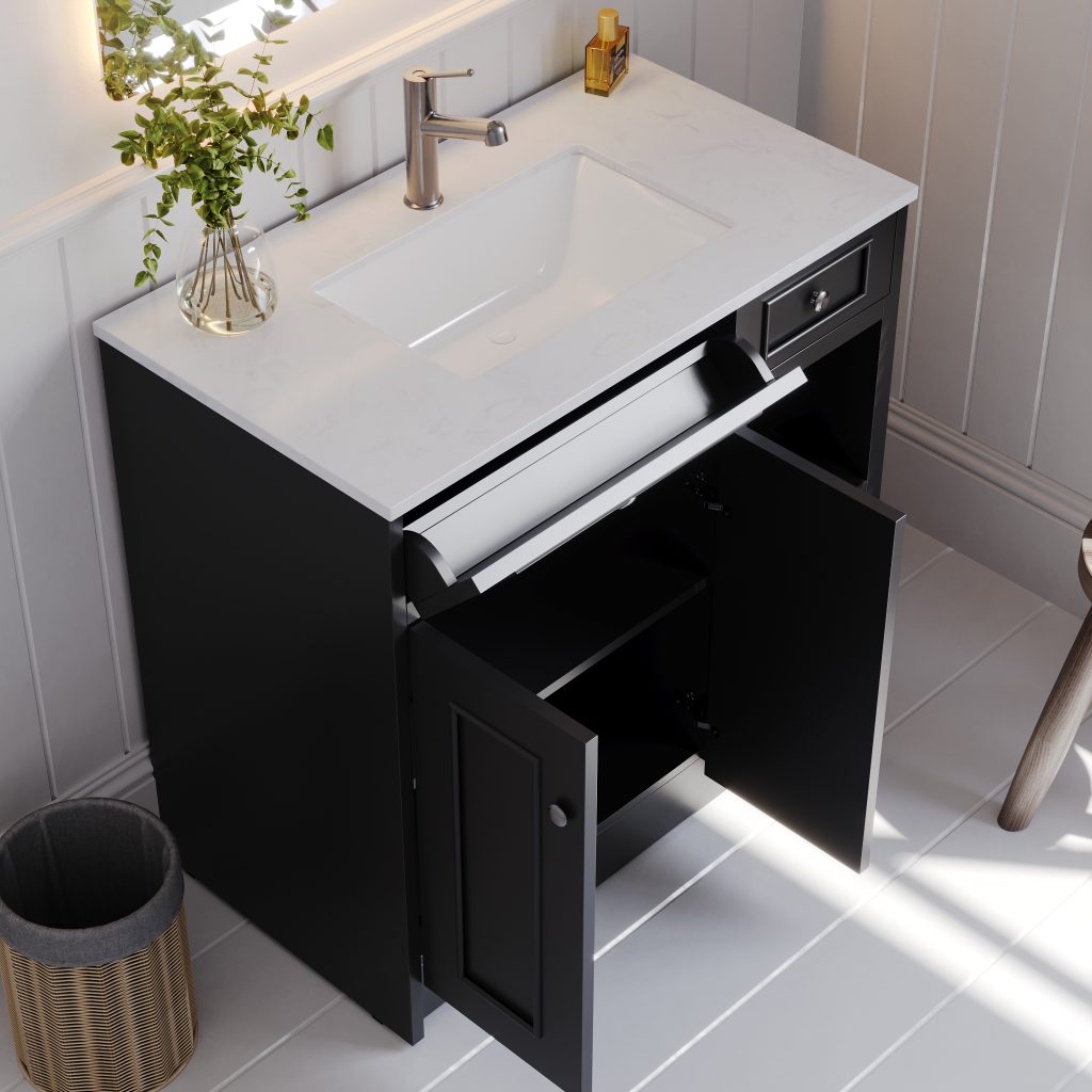Caroline 900mm Solid Wood Floor-Standing Vanity – Hampton Collection – Matte Black