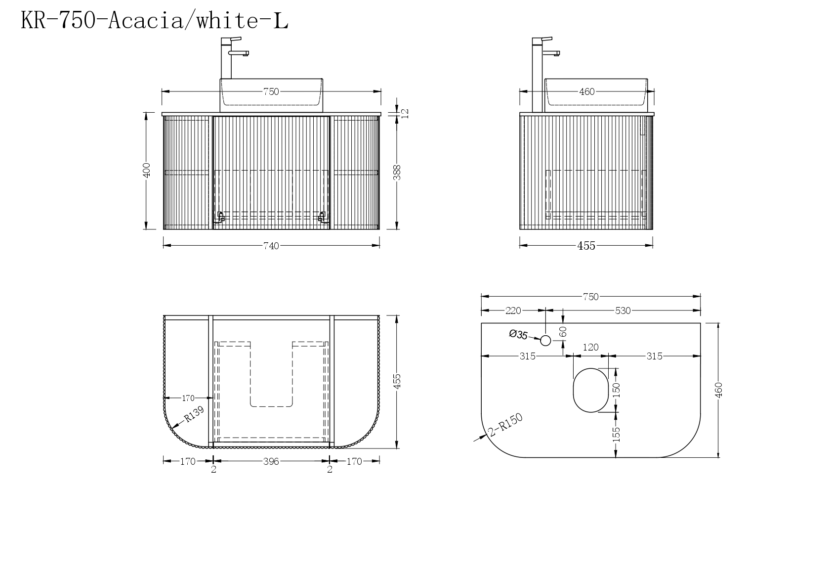 Is the 750mm wall-hung Acacia wood vanity suitable for small bathrooms?