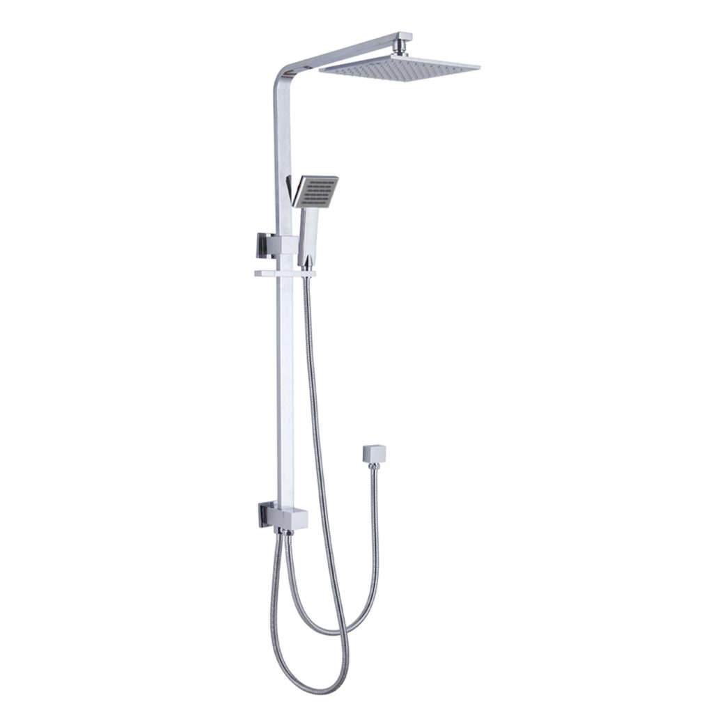 Square Rainfall Twin Shower Set with Adjustable Slide Rail & Handheld Wand Chrome