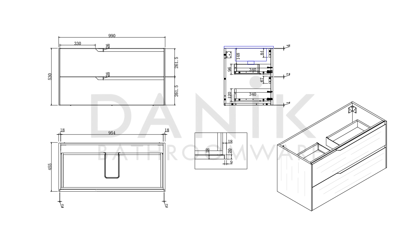 - Cabinet Dimensions: 990mm (W) x 455mm (D) x 530mm (H)