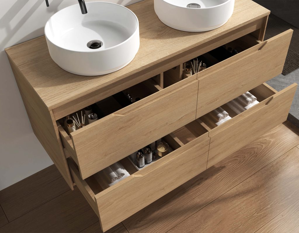 Wai 1200mm Timber Top Wall-Hung Vanity – Honey Oak